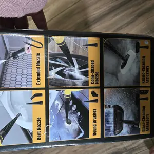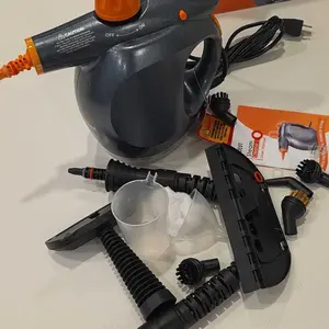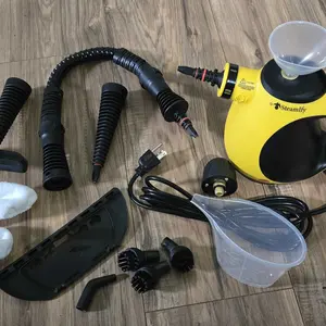With features like a 360-degree cleaning angle, this portable steam cleaner maneuvers easily. It includes multiple cleaning capabilities, such as a window cleaning tool, ironing brush, brush cloth, round nylon brushes, round iron brush, bent nozzle, straight nozzle, extension hose, measuring cup, and funnel.