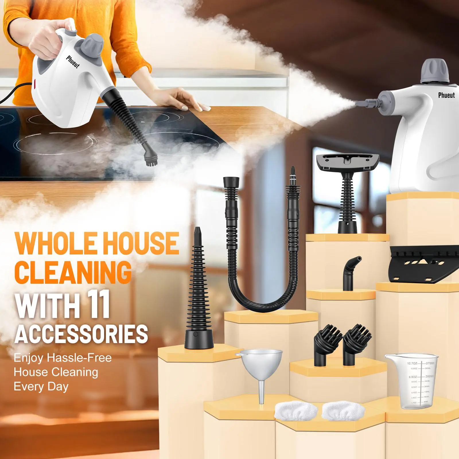 Use the power of pressurized handheld steam cleaner for dish washing, oven cleaning, and soap, cleaning your heavy-duty house. This phueut pressurized steam cleaner loosens dirt and steam your living space effortlessly.