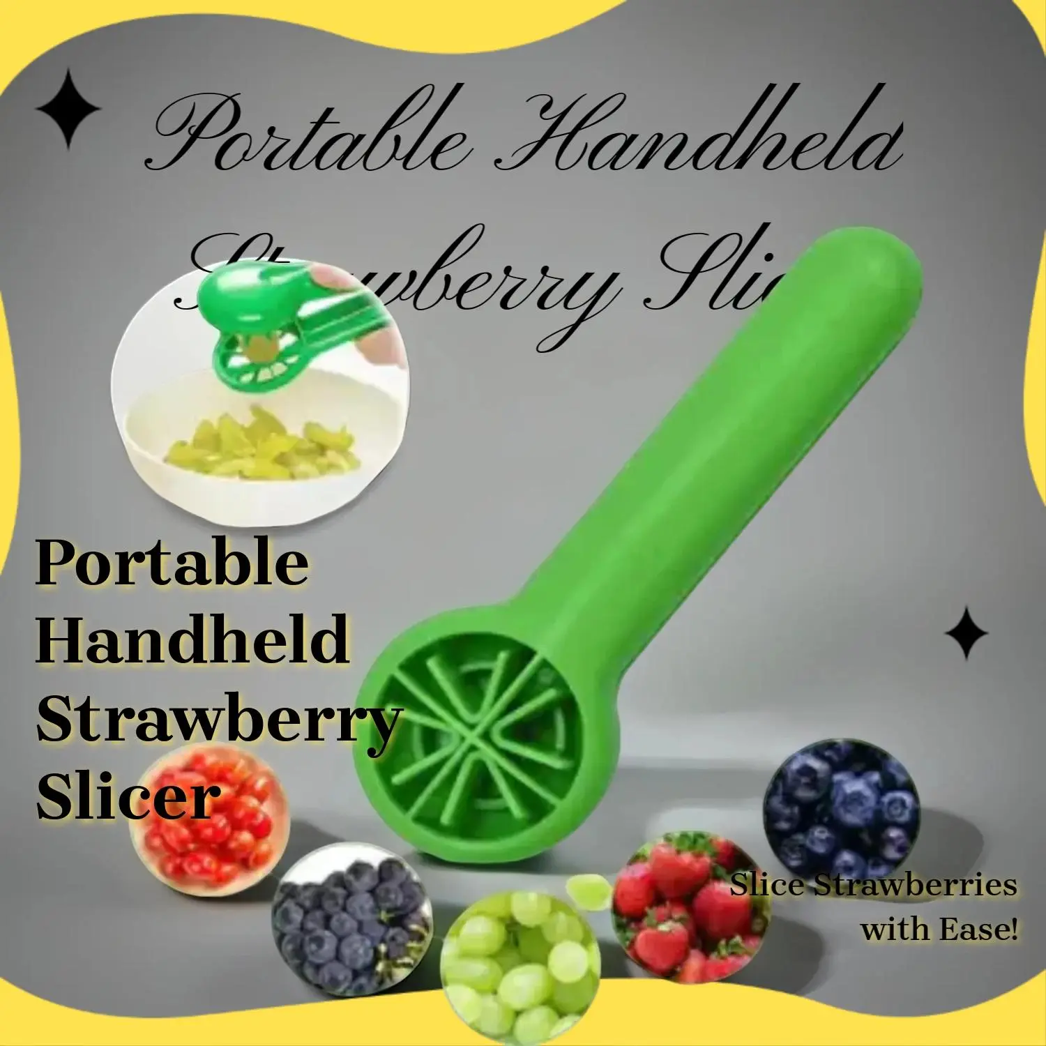 I tried using it on a strawberry after washing . It broke in 3 seconds . Cheaply made, just cut the fruit with a knife