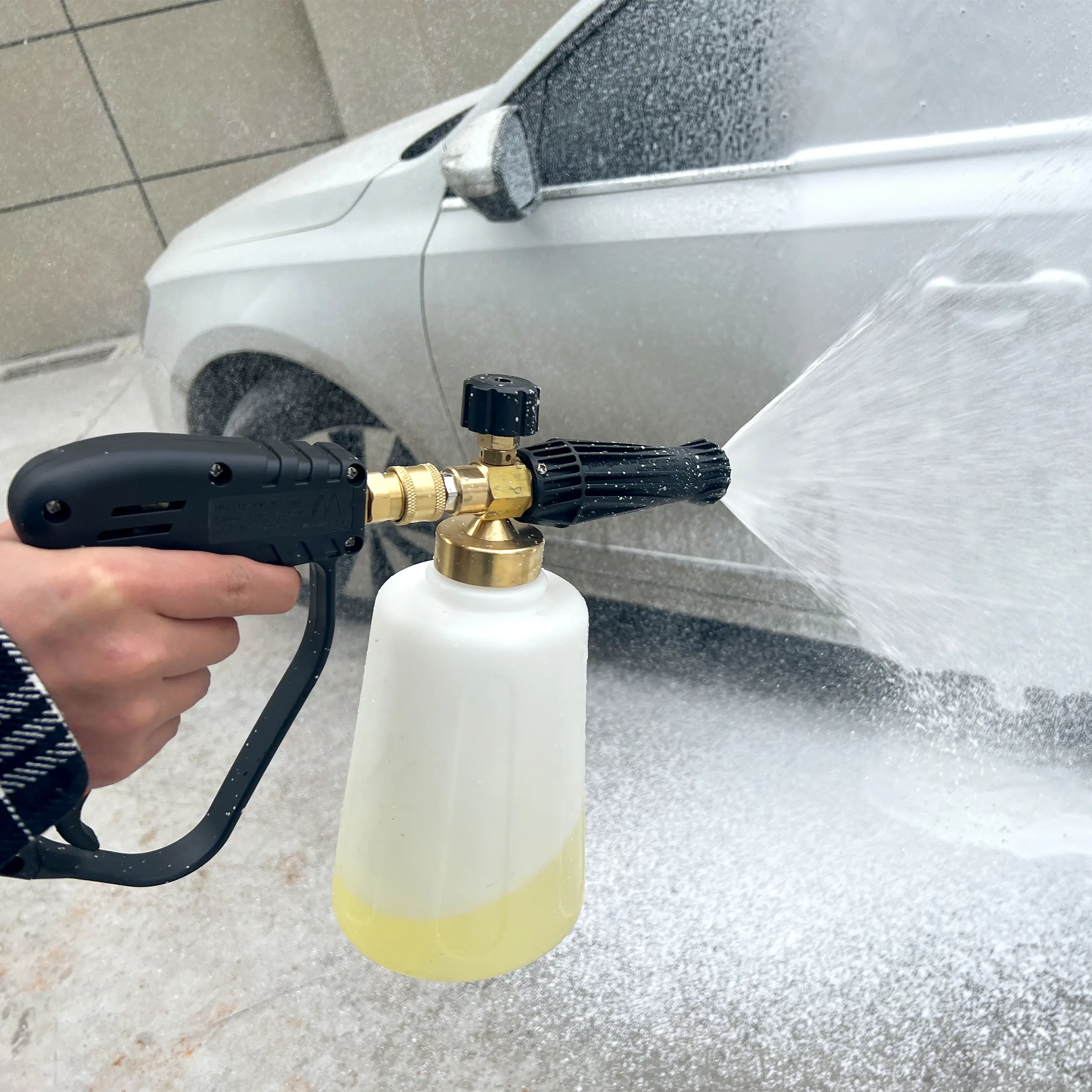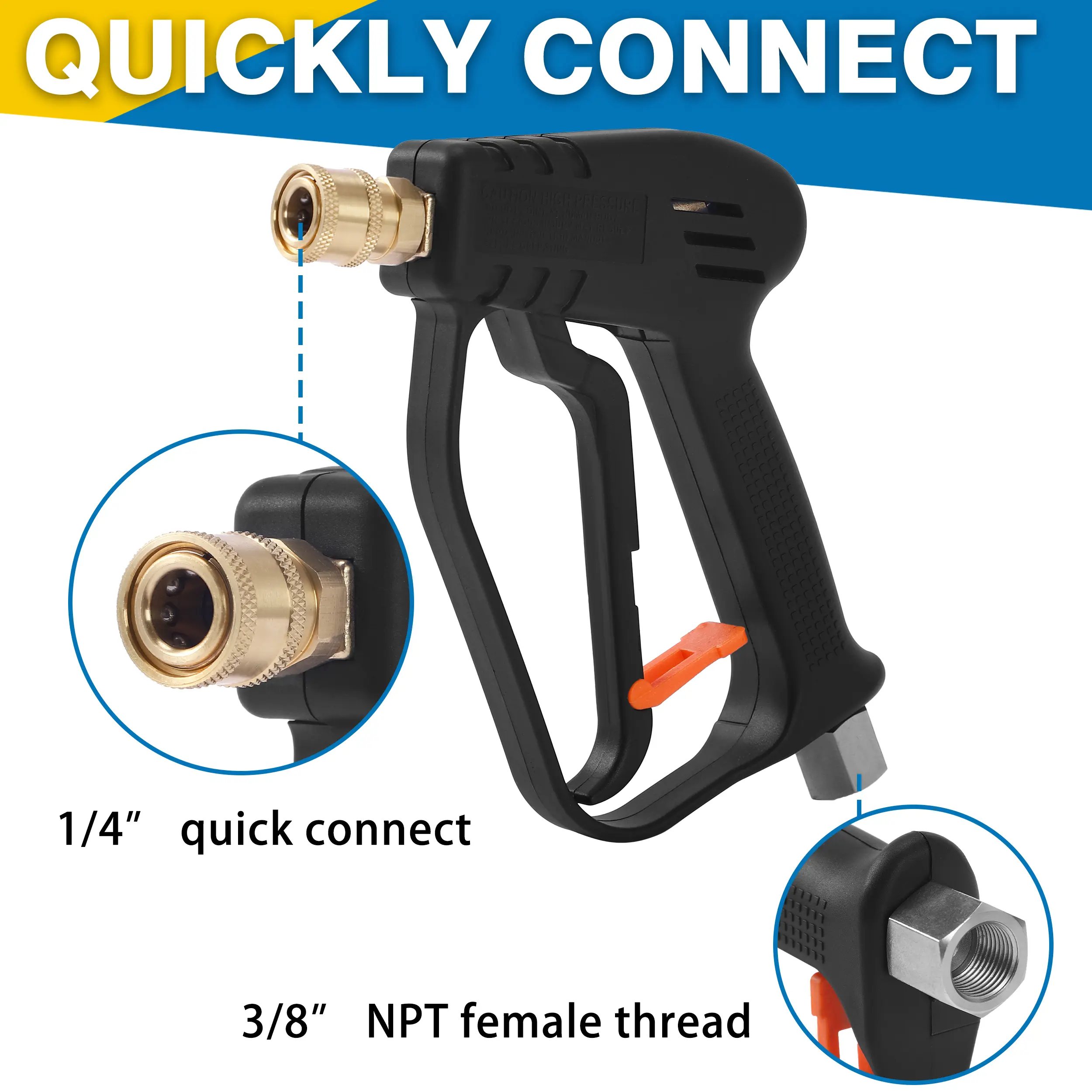 ·【Convenient Design】The stout handheld water spray tool with swivel is very convenient to use with the foam spray lance. The compact body design makes the pressure washer spray lance easy to handle and use, making your work smoother and easier. There is also a trigger locking device to ensure safety.