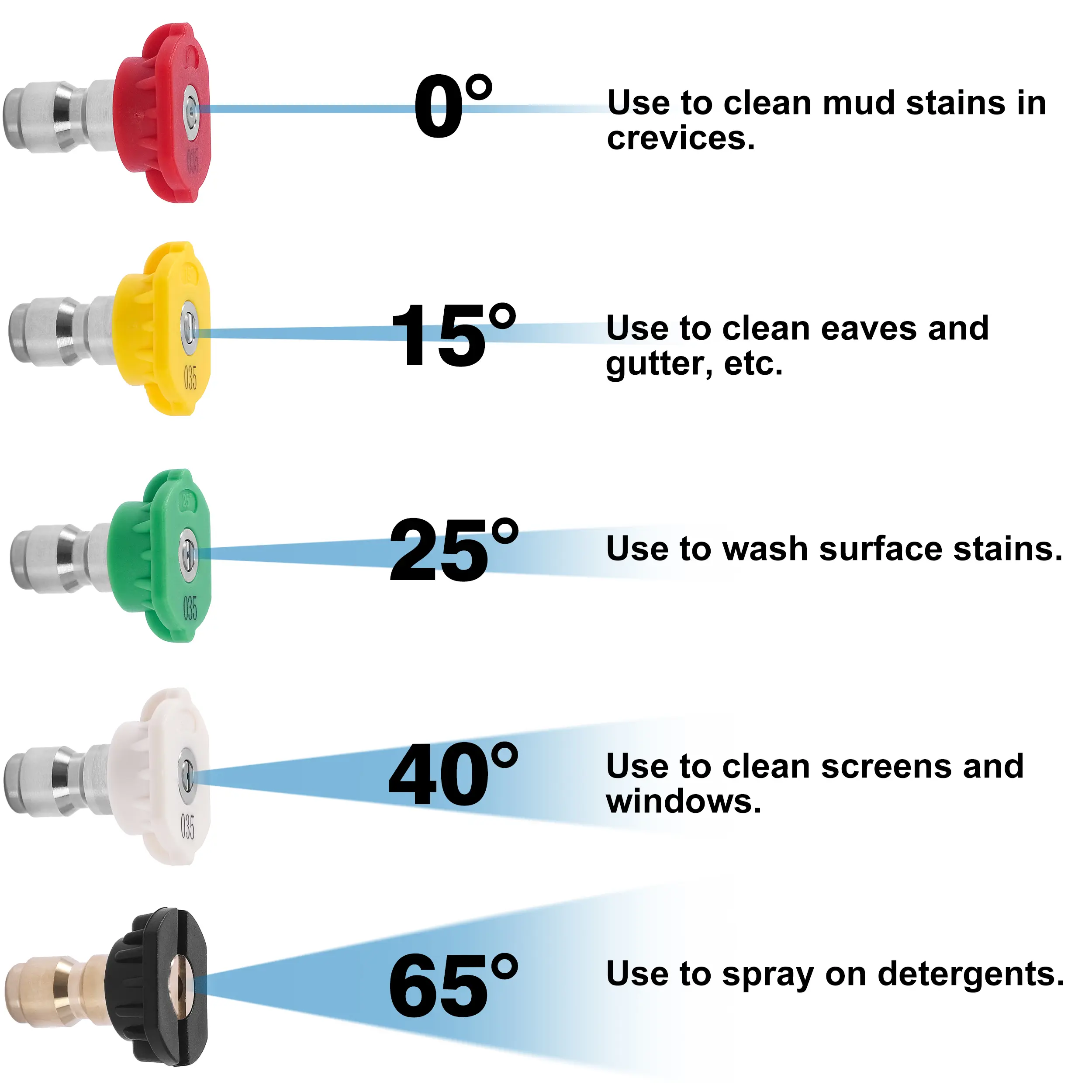 ·【5 Nozzle Tips】The high pressure washer nozzle head has different spray angles to meet your needs in different situations. Add a high pressure washer nozzle holder to prevent nozzle loss and easy to carry. Nozzle size is 3.5.