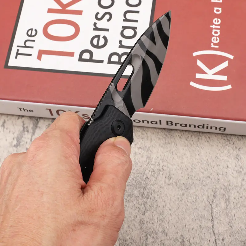 3.Convenient to Use: The pocket knife has a smooth and easy-to-use design. It can be opened quickly with one hand, and the lock is sturdy and reliable. The blade is sharp and can easily cut through a variety of materials, such as paper, rope, and cardboard.