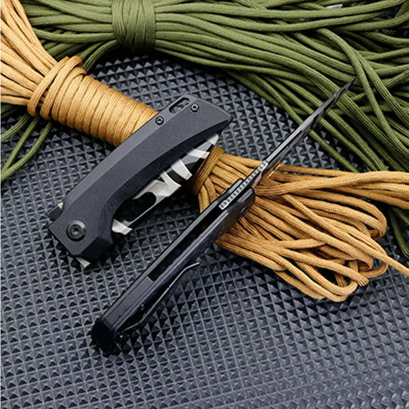1.QUALITY BLADE - Blackwashed reverse tanto blade, which has extremely strong corrosion resistance and can resist the erosion of outdoor acidic and alkaline environments. Good wear resistance and high hardness also mean this pocket knife can withstand extended use without losing its sharpness and performance.