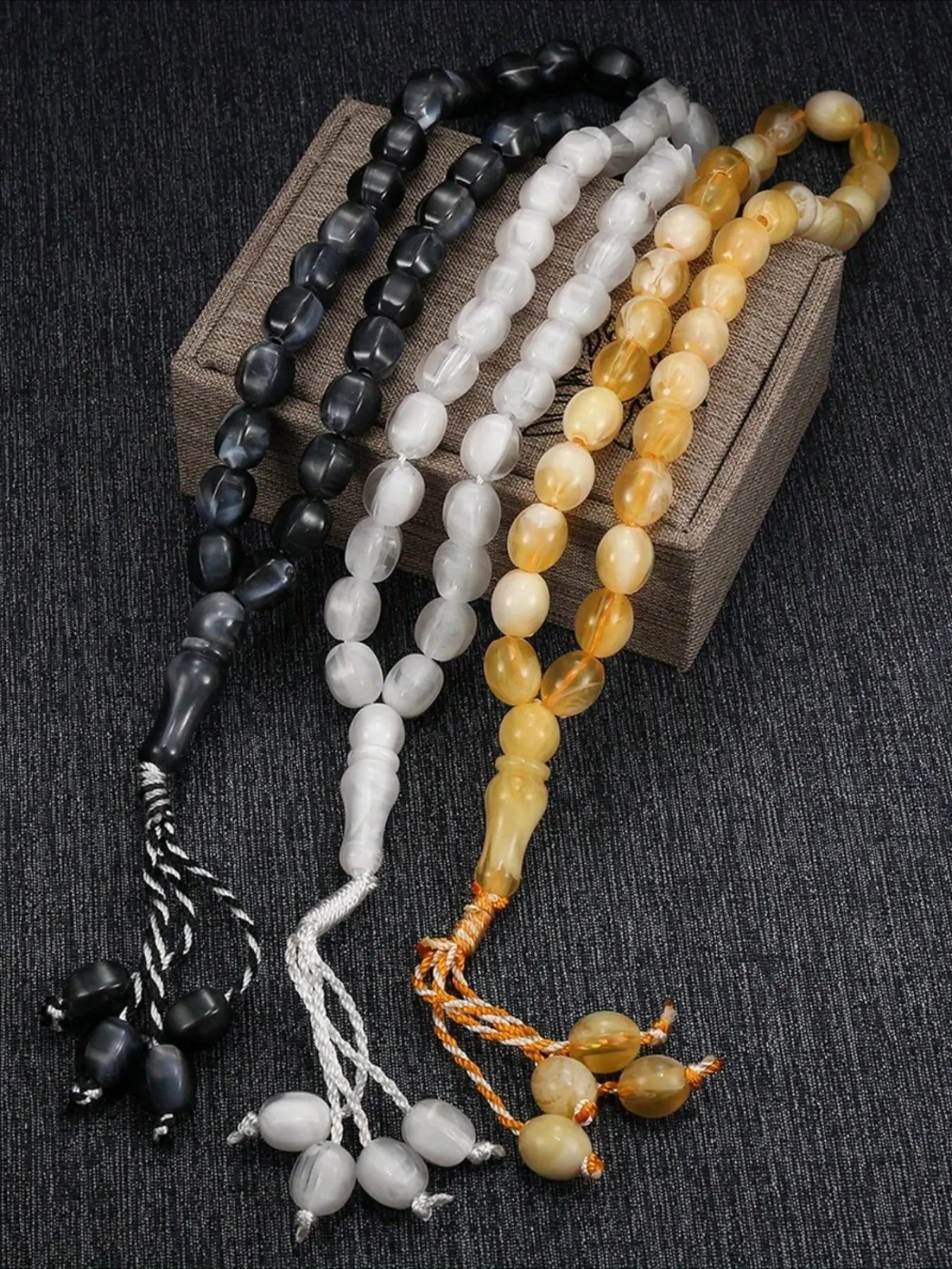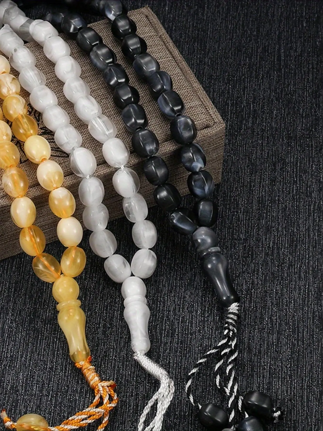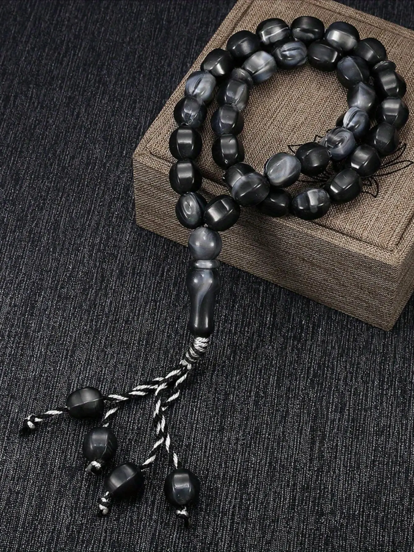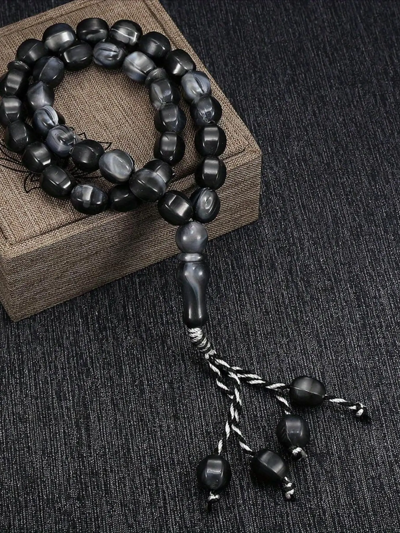 33 Black Angular Acrylic Bead Beads, Hand Knotted Islamic Prayer Beads, Bracelet, Stackable for Wearing, Ramadan, Prayer Accessories and Accessories