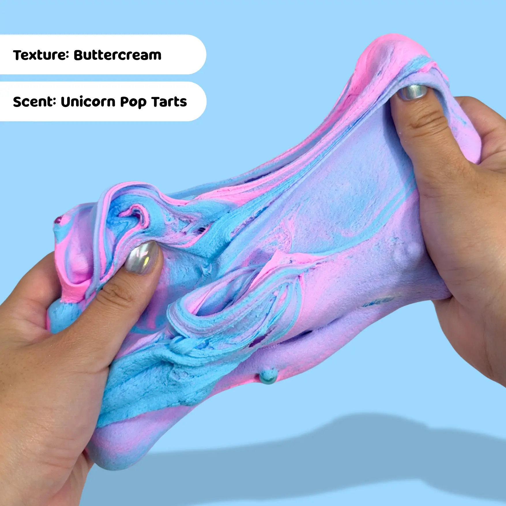 Texture: This slime features a dense buttercream base that smells like sweet pop tarts! It is a perfect beginner-friendly texture that is buttery, sizzly and squishy!