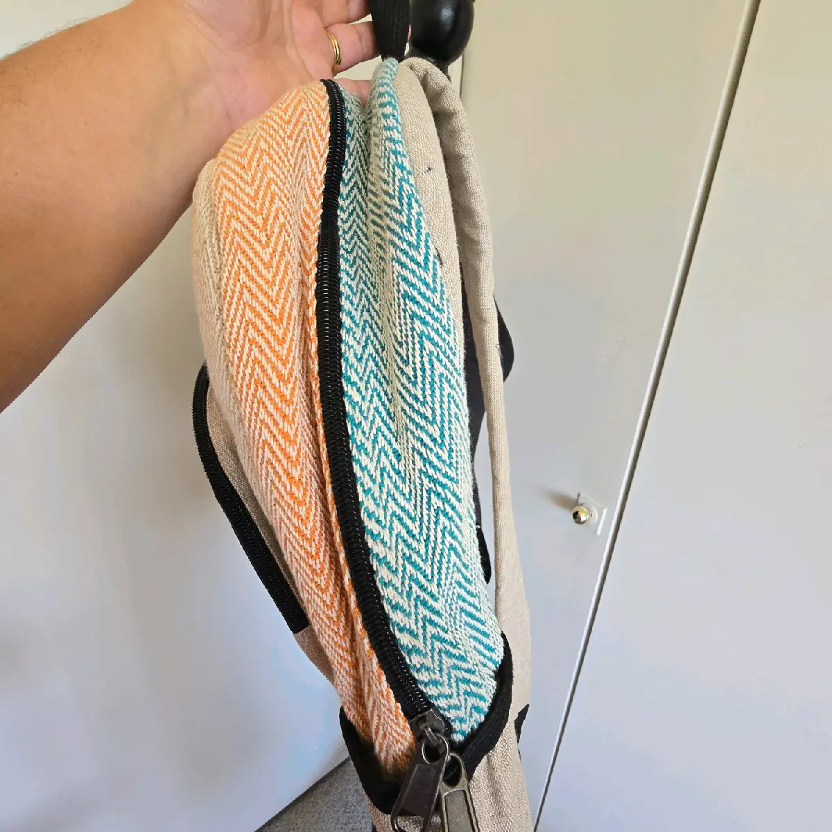 Introducing our brand new bag made with love in Nepal. This bag is perfect for those who are looking for a durable and eco-friendly option. The bag is made with hemp and cotton, which are both sustainable materials that are biodegradable and compostable. The size of the bag is 18" x 14" x 5", making it a great option for school, college, or day-to-day use.