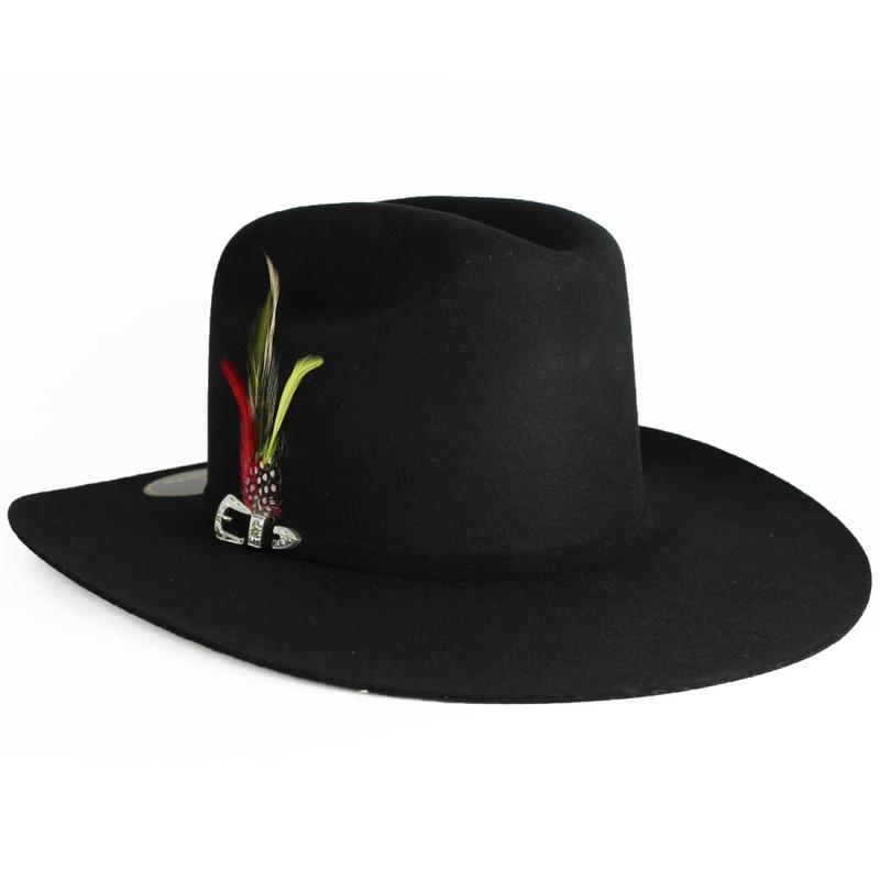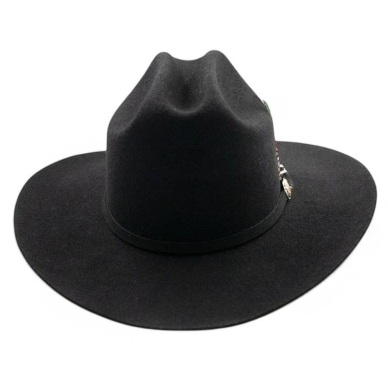 100X  Felt Hat Shape Sinaloa from White Diamonds in black with a feather  "El Innombrable"