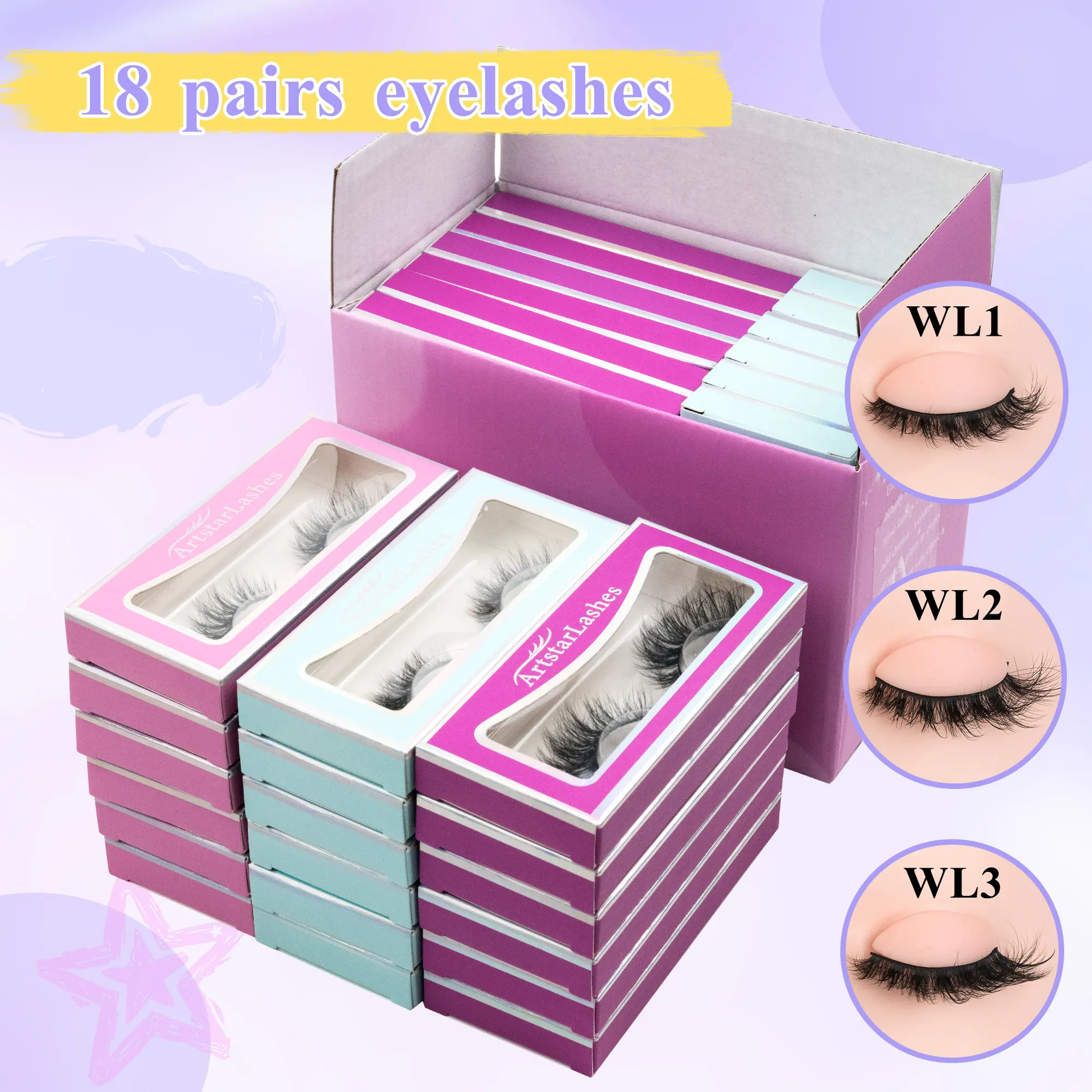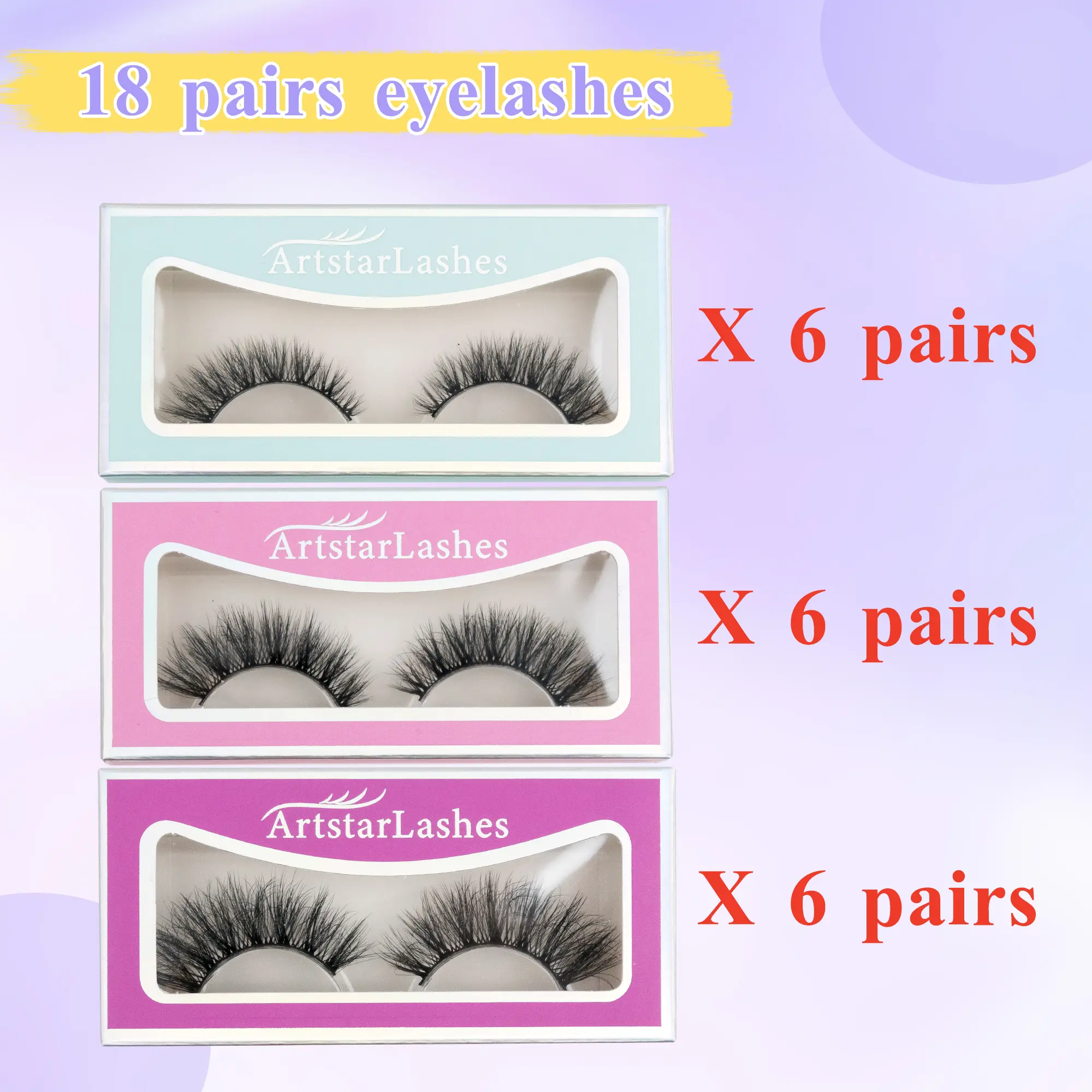 ·ArtstarLashes presents 18 pairs of handmade false eyelashes. These lashes are soft and breathable, ensuring all-day comfort. 🌟