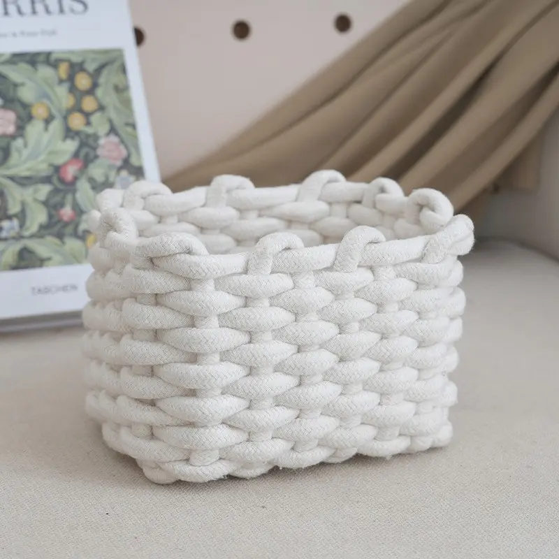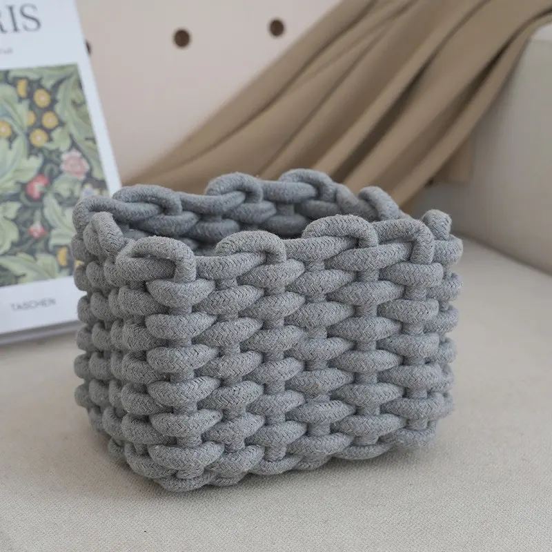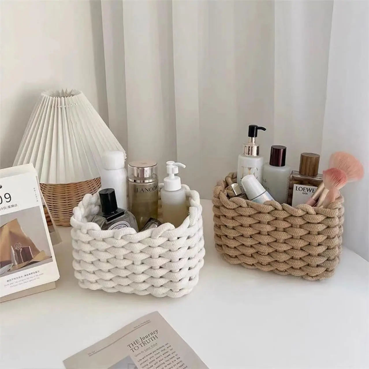 Handmade Polyester Storage Basket Stackable Cosmetic Organizer, Durable Design for Bedroom Living Room Vanity Decor, High-Quality Home Organization, Decorative Appeal