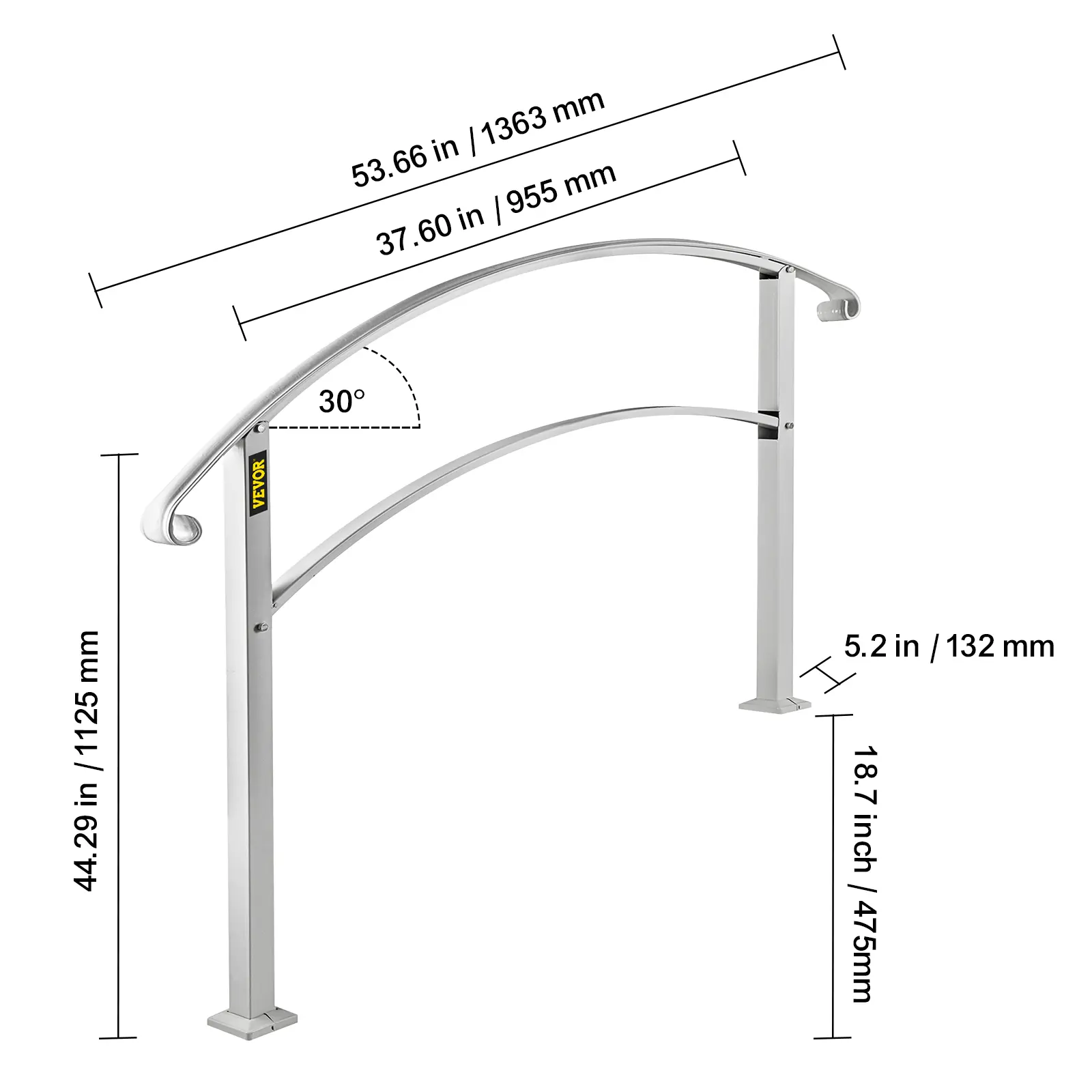 • Flexible for 4 Steps: Max Height for Steps: 18.7"/47.5 cm; Distance Between Posts: 37.6"/95.5 cm; Upper Post Height: 38.2"/97 cm; Lower Post Height: 41.7"/106 cm. Due to the flexible height, our wrought iron handrail fits your 4 steps according to the different sizes. It is perfect for helping people keep balance in the rain or winter and prevent skidding.