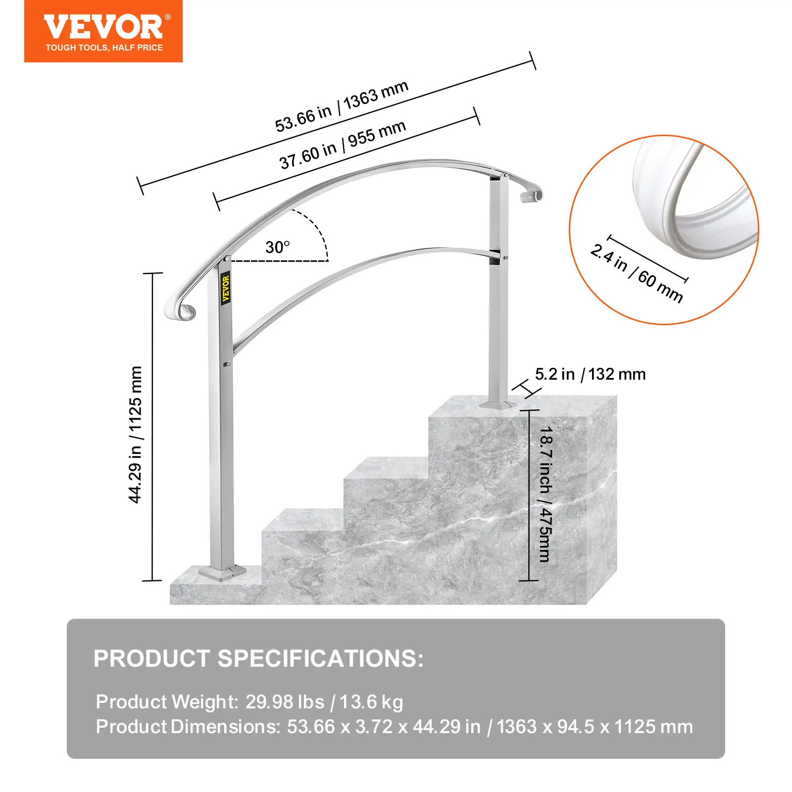 • Stylish & Delicate Design: Our handrail for concrete steps features a smooth powder-coated surface with chic white, which allows you to clean it with water or cloth easily and quickly. Its classic curly side design is beautiful and delicate, making it more ornamental and eye-catching. In addition to providing security protection, the handrail also decorates your stairs.