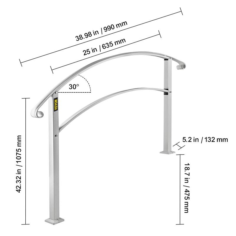 • Flexible for 3 Steps: Max Height for Steps: 18.7"/47.5 cm; Distance Between Posts: 25"/63.5 cm; Upper Post Height: 38.2"/97 cm; Lower Post Height: 41.7"/106 cm. Due to the flexible height, our wrought iron handrail fits your 3 steps according to the different sizes. It is perfect for helping people keep balance in the rain or winter and prevent skidding.