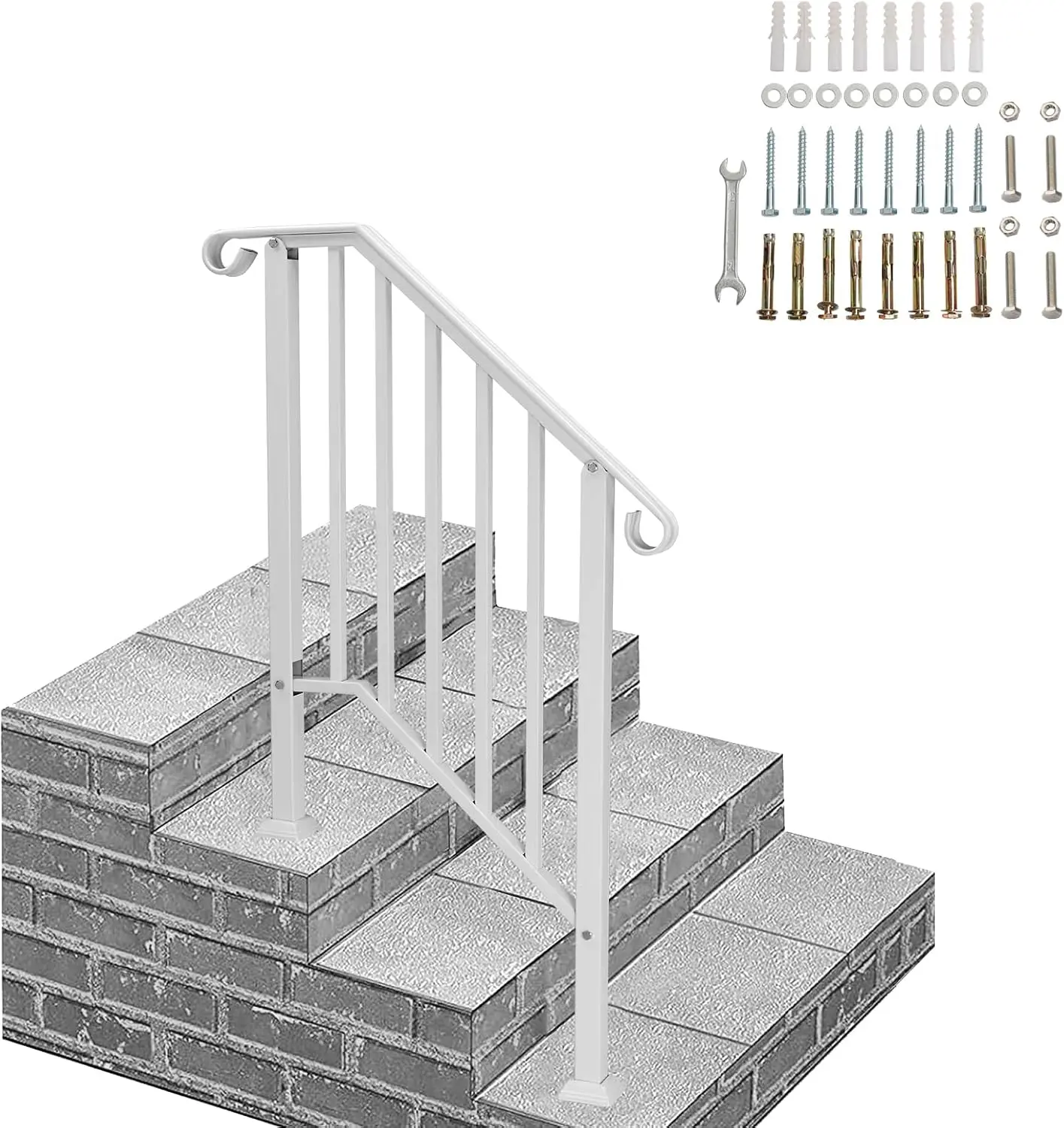 ·【Sturdy and Durable】Made of durable wrought iron, our handrails support weights up to 600lbs without wobbling. They have a powder-coated surface that is rust-resistant and can withstand various weather conditions