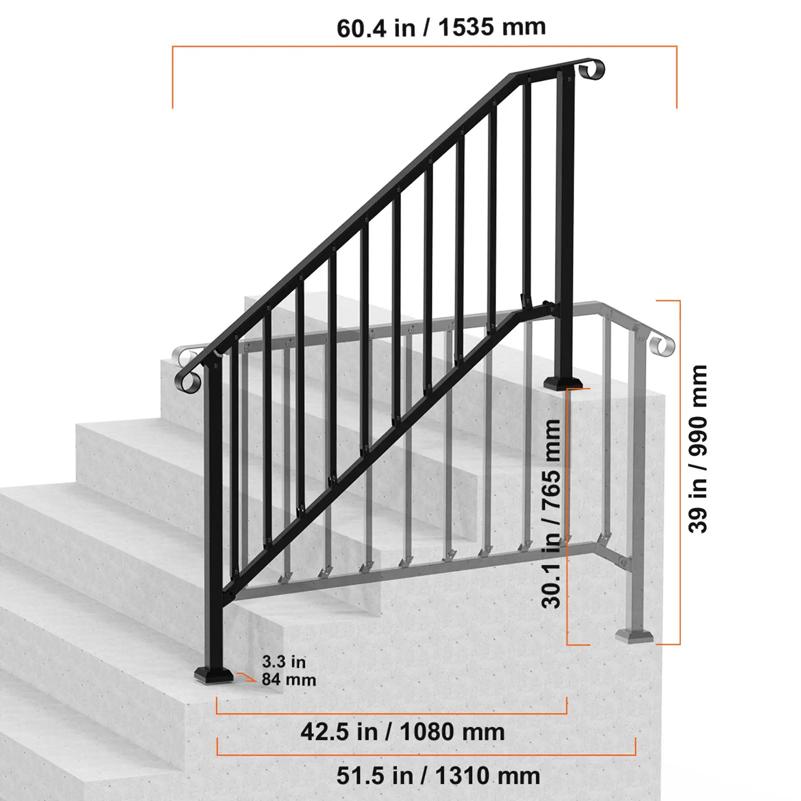 • Suitable for 5-6 Step Levels: With an adjustable angle ranging from 14 to 50 degrees, this handrail is perfect for accommodating 5-6 step levels. It is ideal for various applications such as doorsteps, garage entrances, and garden railings, ensuring a versatile fit.