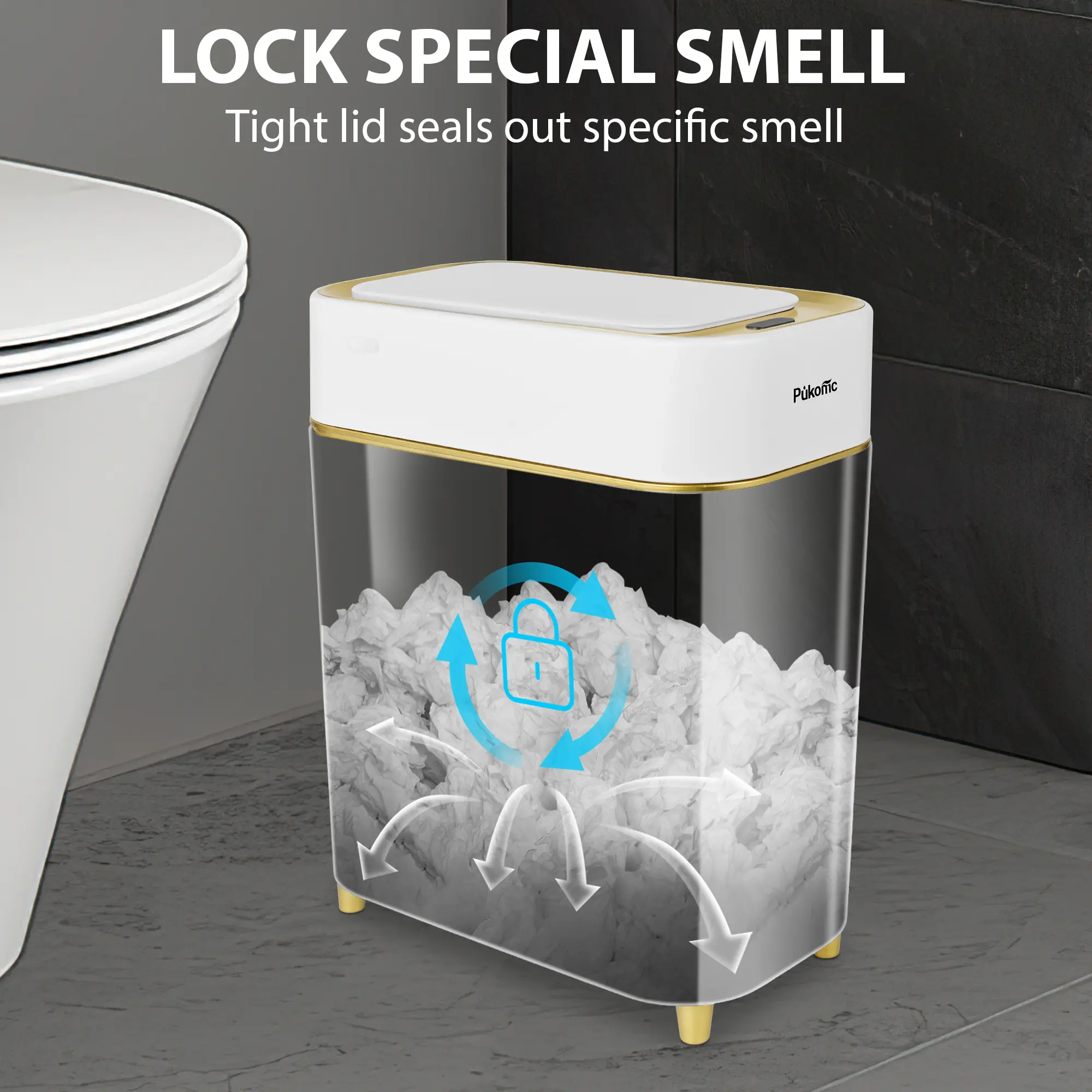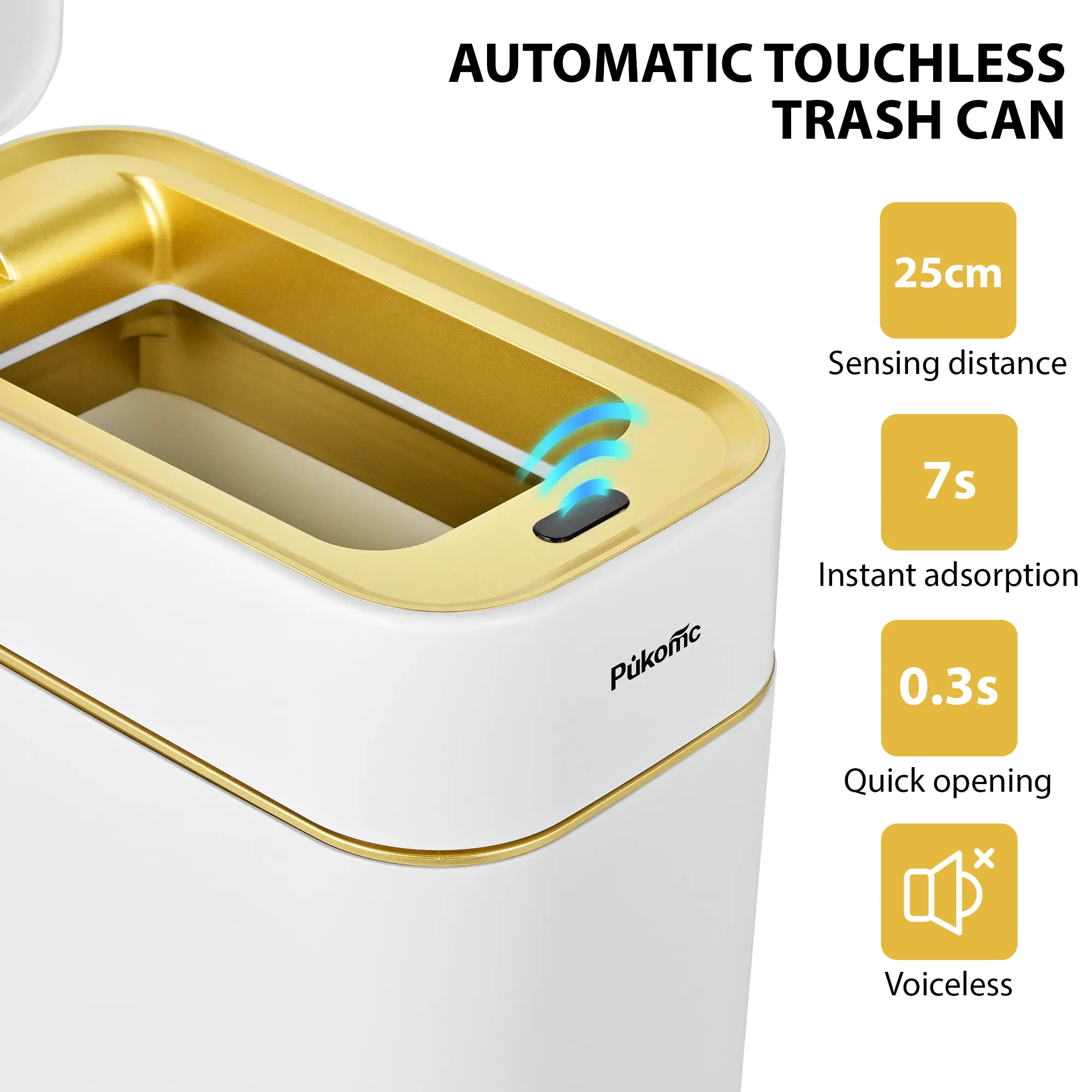 Introducing the Pukomc Auto-Sensor Trash Bin, designed for convenience and efficiency in your daily routine.