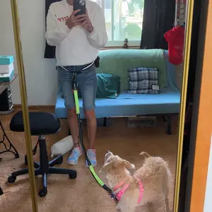 this leash is everything! he stays right by me at all times, and i don’t have to constantly grab the leash! i was two dogs at once, so it gets a bit hectic when you have to physically hold two leashes while walking your dogs . 🐶