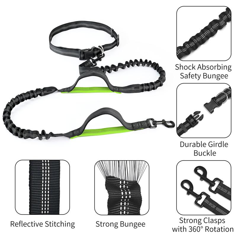 These hands-free dog leashes are amazing. The clasps are strong, the belt is sturdy and adjustable to any size, and the two handles make getting control of your dog/dogs so much easier. Our dogs had to adjust to the bungee part of the leash, but other than that it makes walking them way easier!