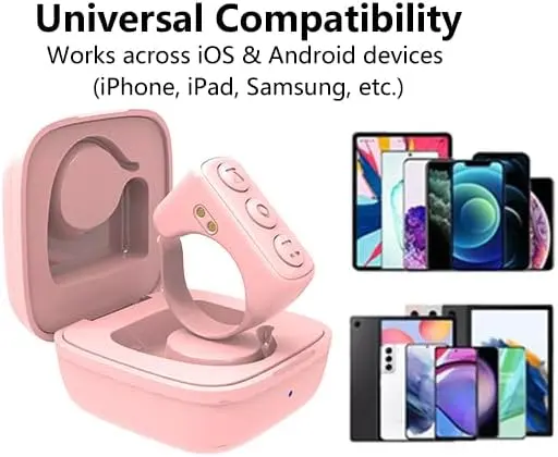 TikTok Scrolling Ring, Remote Control for TikTok/YouTube Shorts/Instagram Reels, Bluetooth Page Turner for iPad/Kindle App/iPhone/Android (Pink)