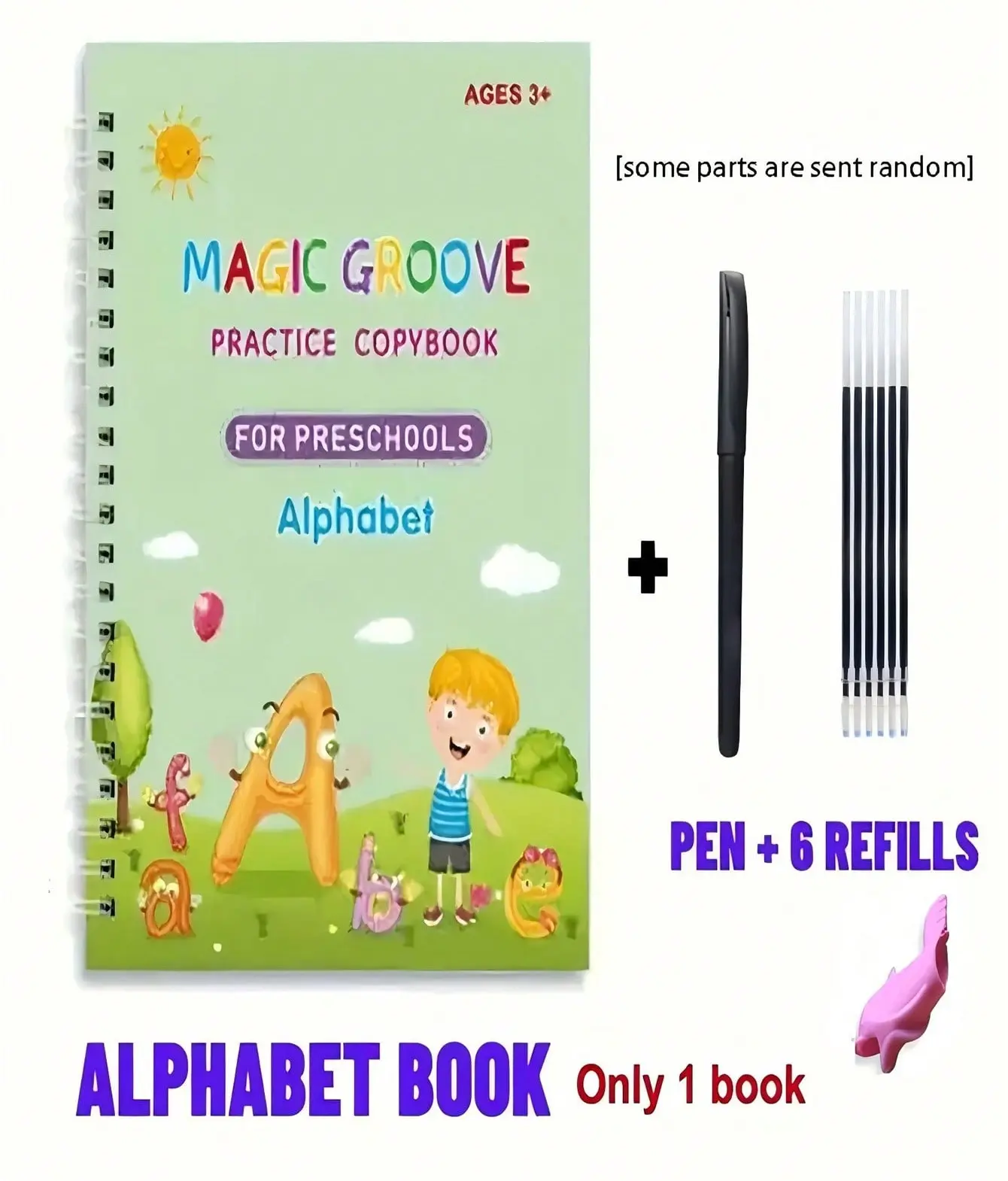 Introducing the Magic Ink Handwriting Practice Books Set, designed specifically for kids aged 3 to 8 years old. This comprehensive set includes four reusable grooved letter tracing books, a cartoon pen, a pen holding aid, and six refills, making it an essential addition to your child's learning toolkit.