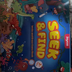 The JoyCat Seek & Find Game Books set includes 1 reusable activity book (with 15 Seek & Find themes and 13 educational activity themes), 4 dry erase markers (2 black, 1 blue, 1 red), 1 dry erase cloth, and 1 convenient storage bag. (CHOKING HAZARD -- Small parts. Not for children under 4 yrs.)
