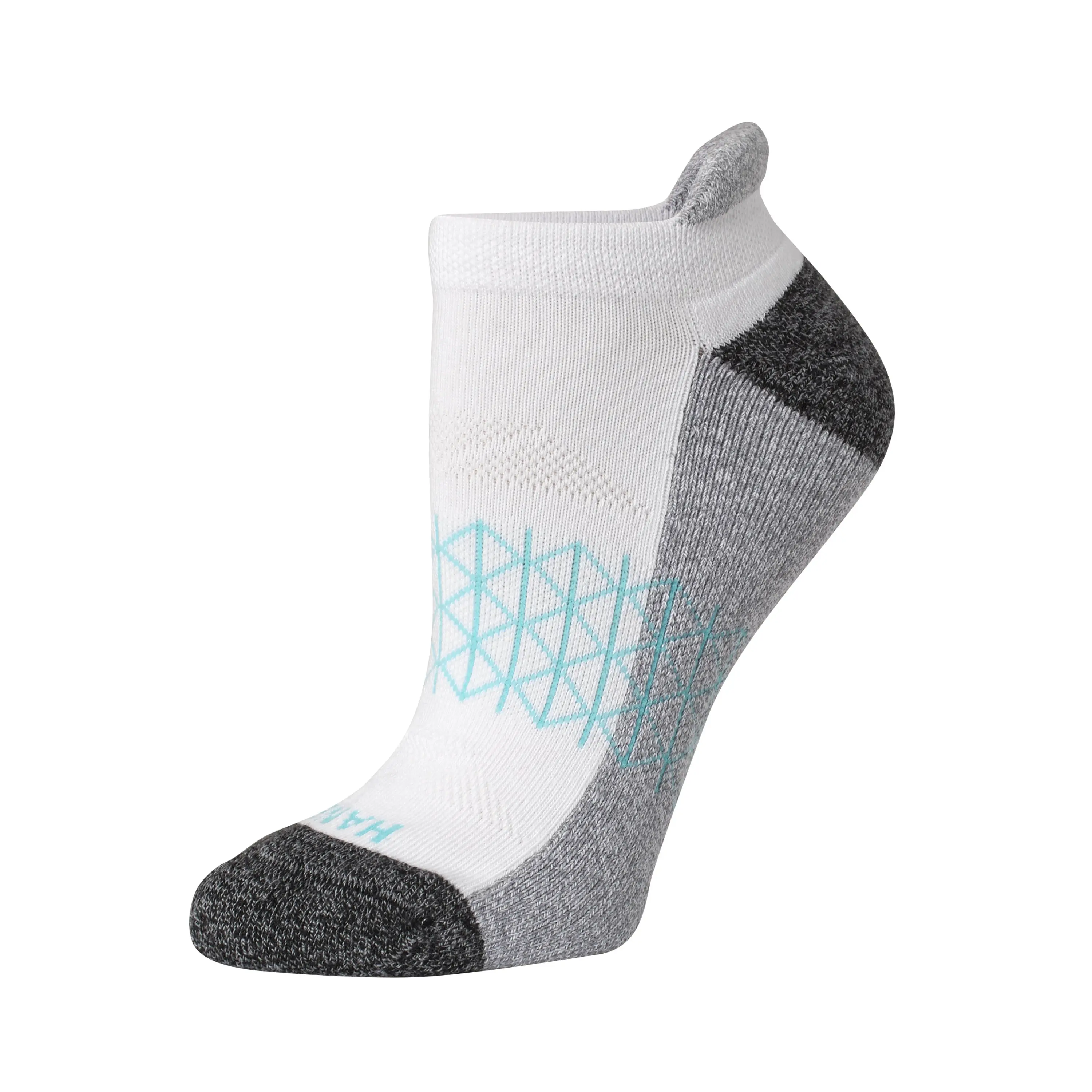 SOFT, SUPPORTIVE SOCKS Comfort you can count on, hidden right where you want it. Hanes Absolute™ Cushioned No Show Tab Socks are crafted to deliver soft, supportive wear in a barely-there silhouette that fits seamlessly inside your favorite shoes. Made from a comfort cotton blend, these women’s athletic socks feel smooth and gentle against the skin while standing up to everyday use. A generously cushioned footbed adds plush, cloud-like padding underfoot to help absorb impact during busy days and long hours on the move. Built-in arch support and a deep heel pocket work together to create a secure, stay-put fit that hugs the foot without feeling restrictive. A smooth, seamless toe helps minimize discomfort from bulky seams, keeping the fit comfortable throughout the day. Moisture-wicking fabric helps manage sweat to keep feet feeling cooler and fresher, while a discreet heel tab adds extra protection and helps prevent slipping. Finished in a convenient four-pair pack, these cushioned women's no-show socks deliver everyday comfort, reliable performance, and outstanding value—proof that premium feel doesn’t have to come with a premium price.