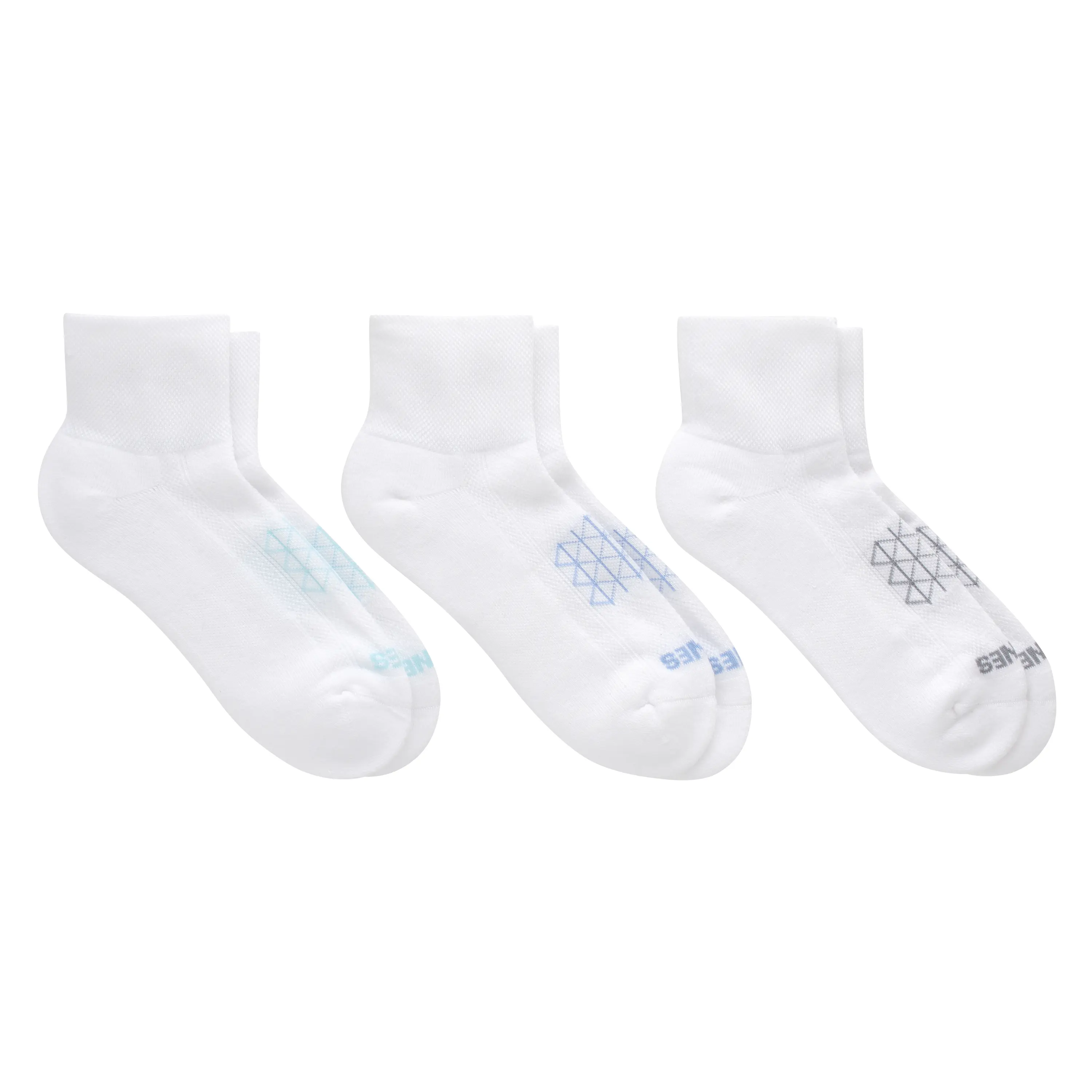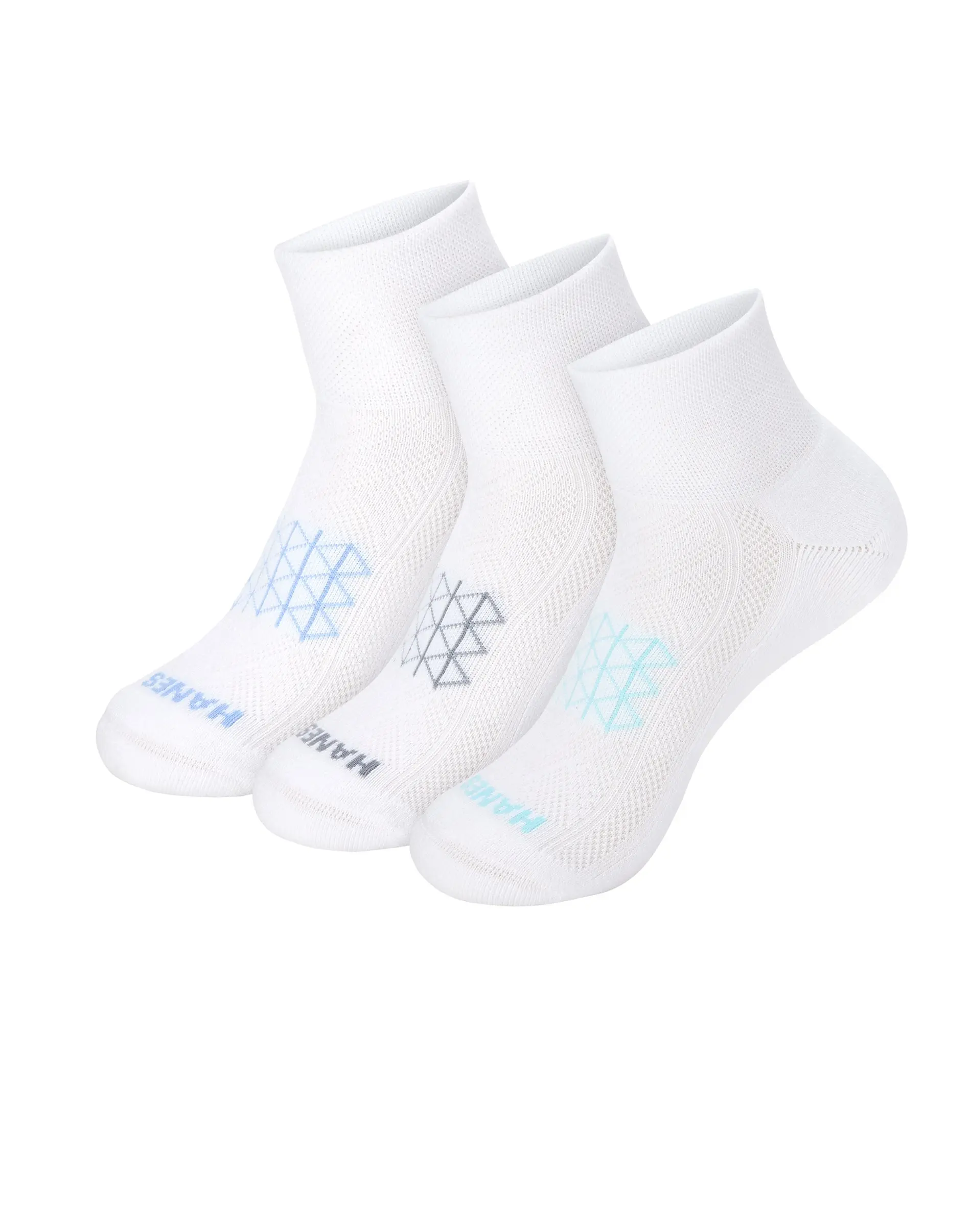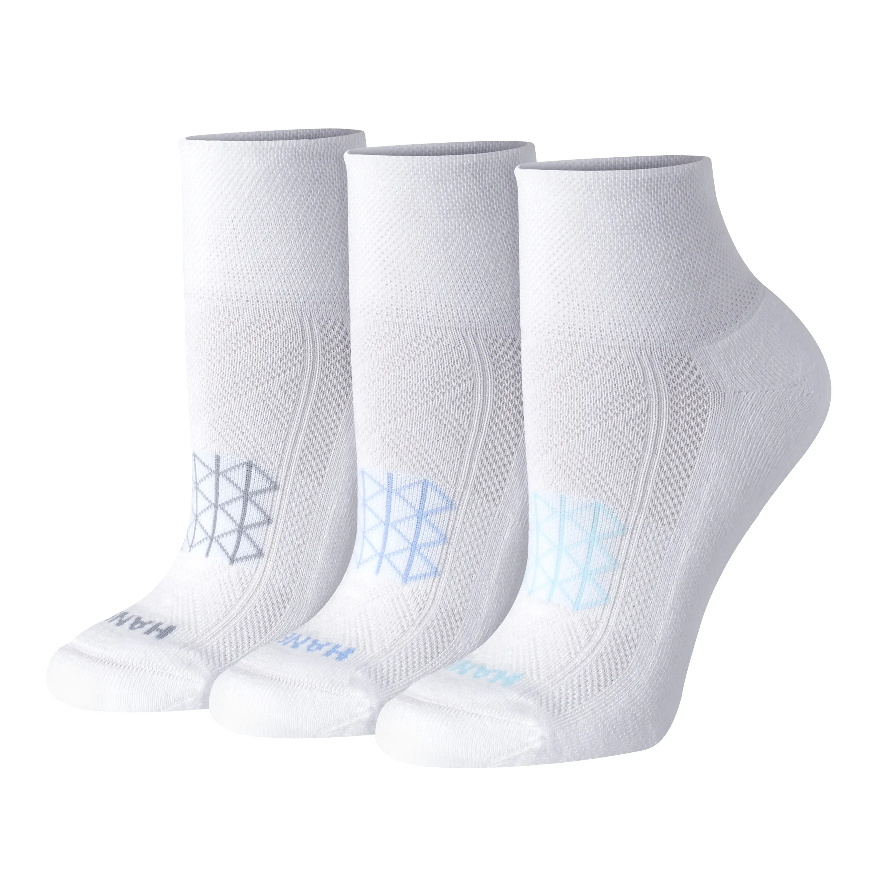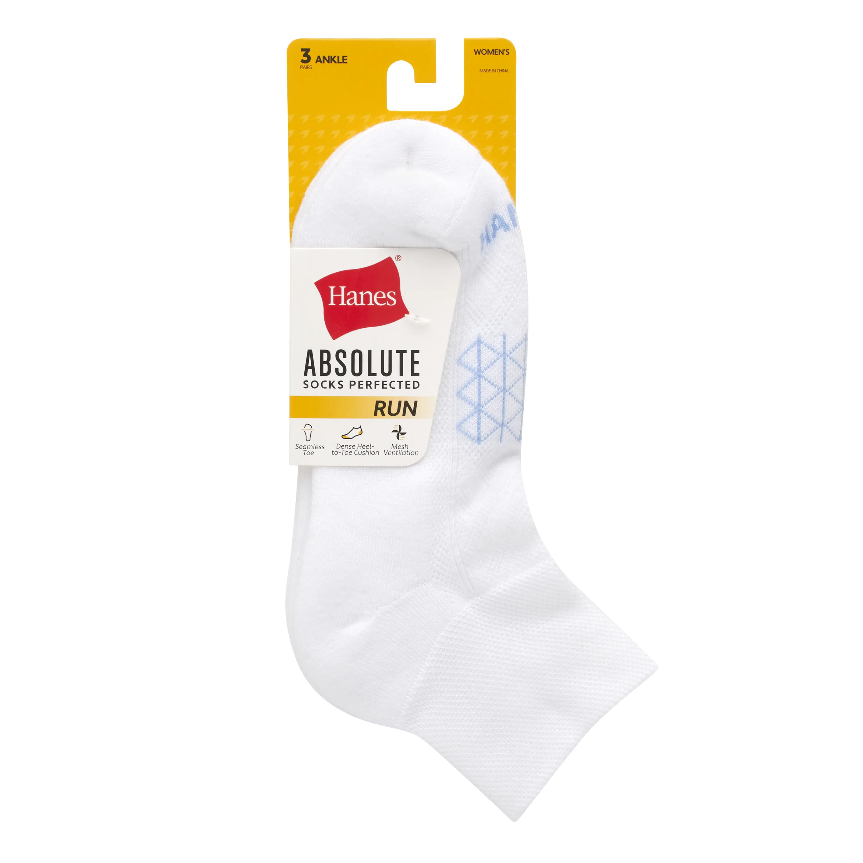 SOCKS PERFECTED Built for the serious runner but so comfy you won’t want to take them off, Hanes Absolute™ Run women’s ankle socks are engineered for performance. Crafted from our best spun polyester blend, these exceptional women’s socks have a dense heel-to-toe cushion that helps absorb shock. A seamless toe is designed to reduce irritation while an arch support system delivers a snug fit. You’ll appreciate the breathable mesh panel on the top of the foot and wicking fabric that helps keep your feet cool and dry. Hitting just above the ankle, quarter socks disappear beneath most shoes. The best part? This three-pack of running socks offers unbeatable quality at an impressive price point. Hanes Absolute. Because your comfort shouldn’t compromise your budget. SOCKS PERFECTED, HANES GUARANTEED - Stock up with three pairs of women’s running socks for unbeatable quality at an impressive price point.