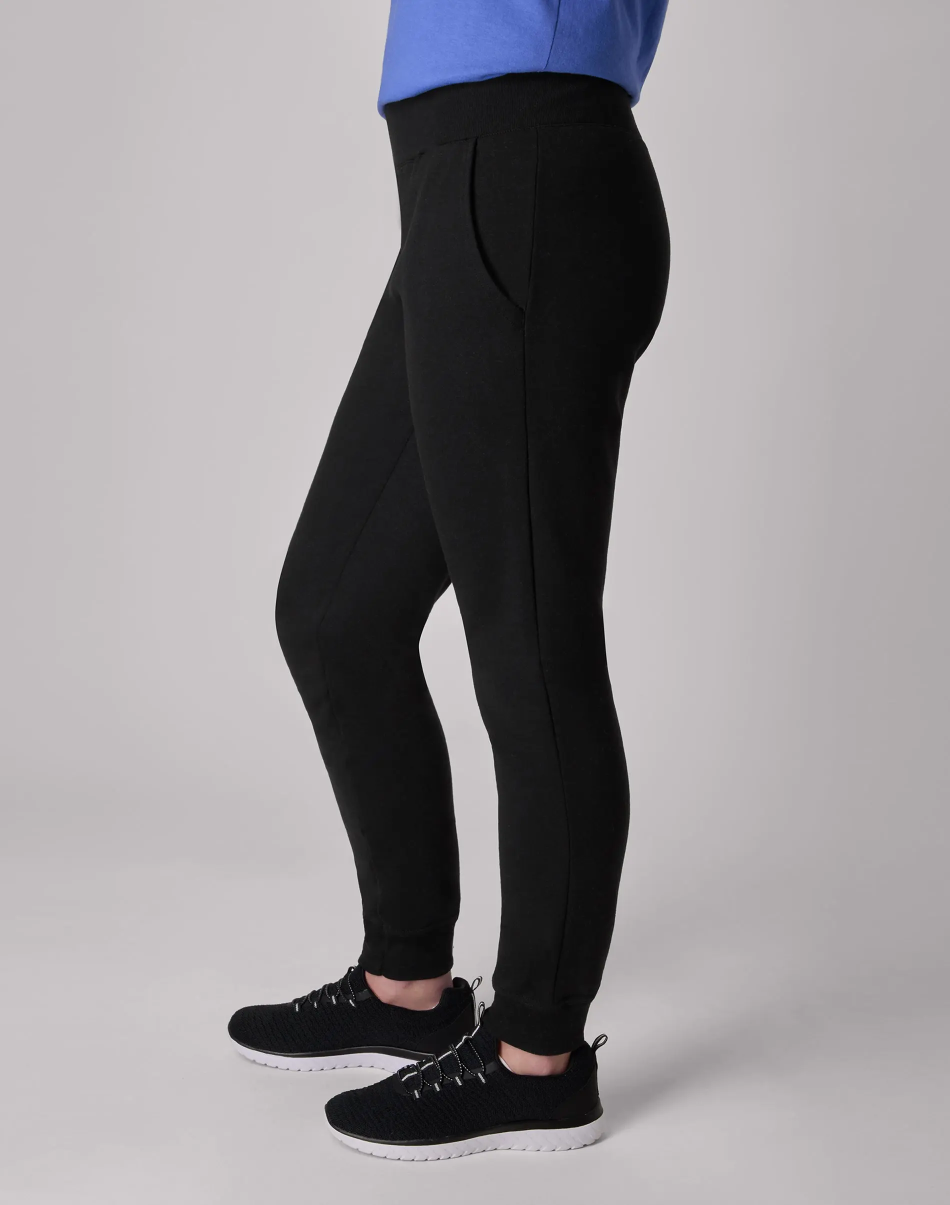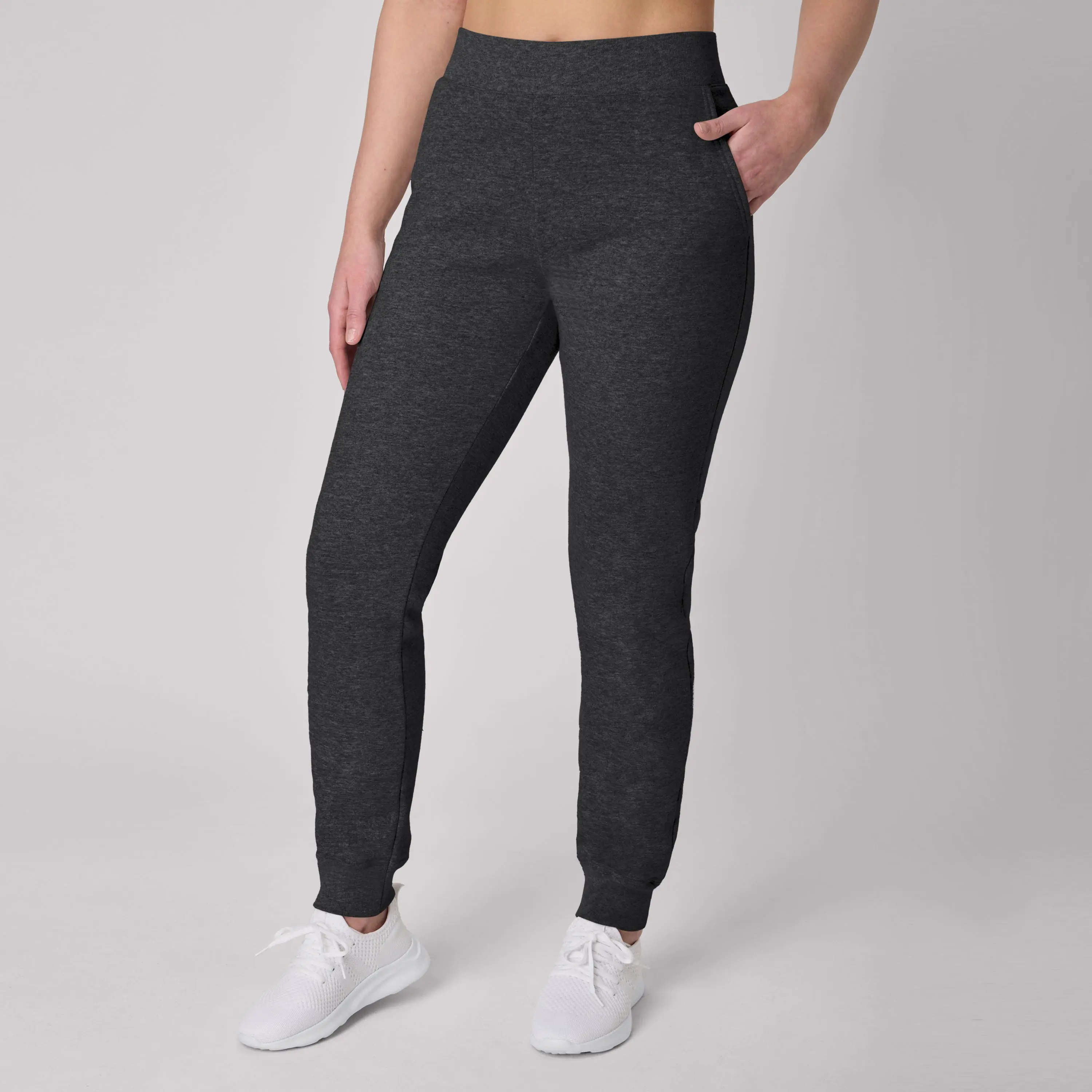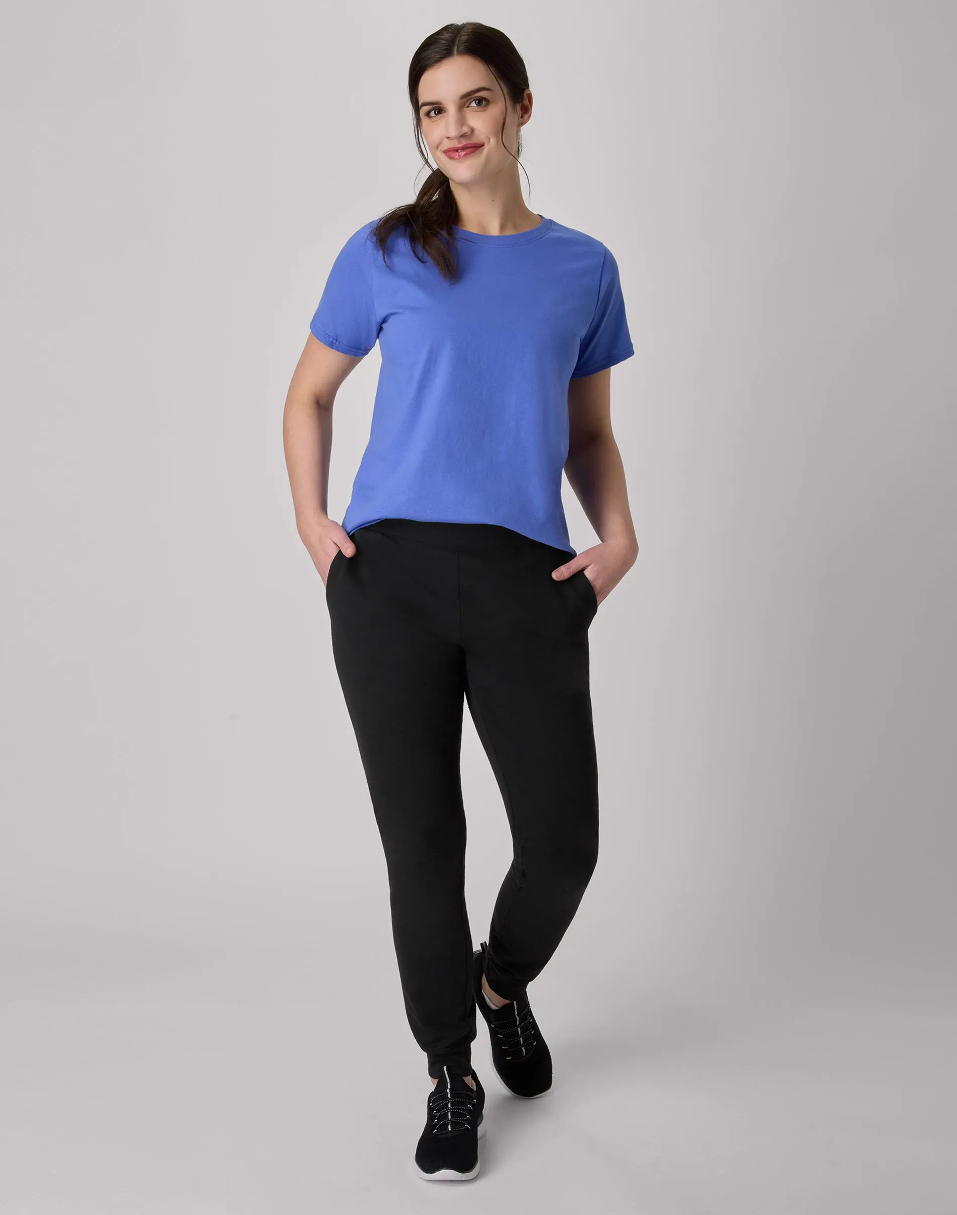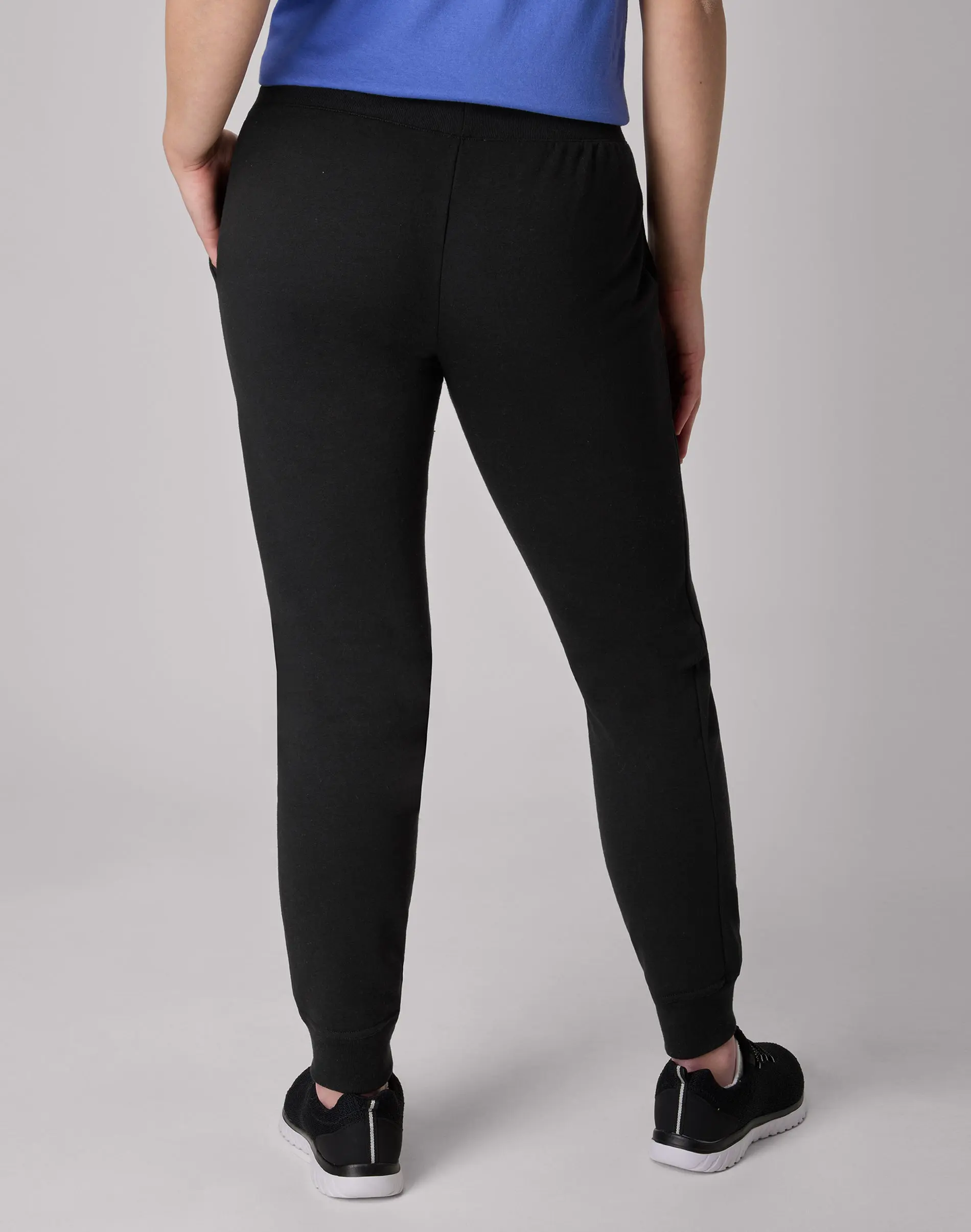 UPDATE YOUR SWEATS STYLE Thanks to their cozy design, you’ll never want to take these Hanes EcoSmart® women’s joggers off. Made from a soft, midweight cotton/polyester blended fabric, these casual-cool sweatpants offer convenient side pockets and a stretch waistband for move-with-you comfort. The classic jogger style is detailed with a 29-inch inseam and ribbed leg cuffs. Pair these women’s sweatpants with your favorite sweatshirt or tee for a laid-back, effortless look.