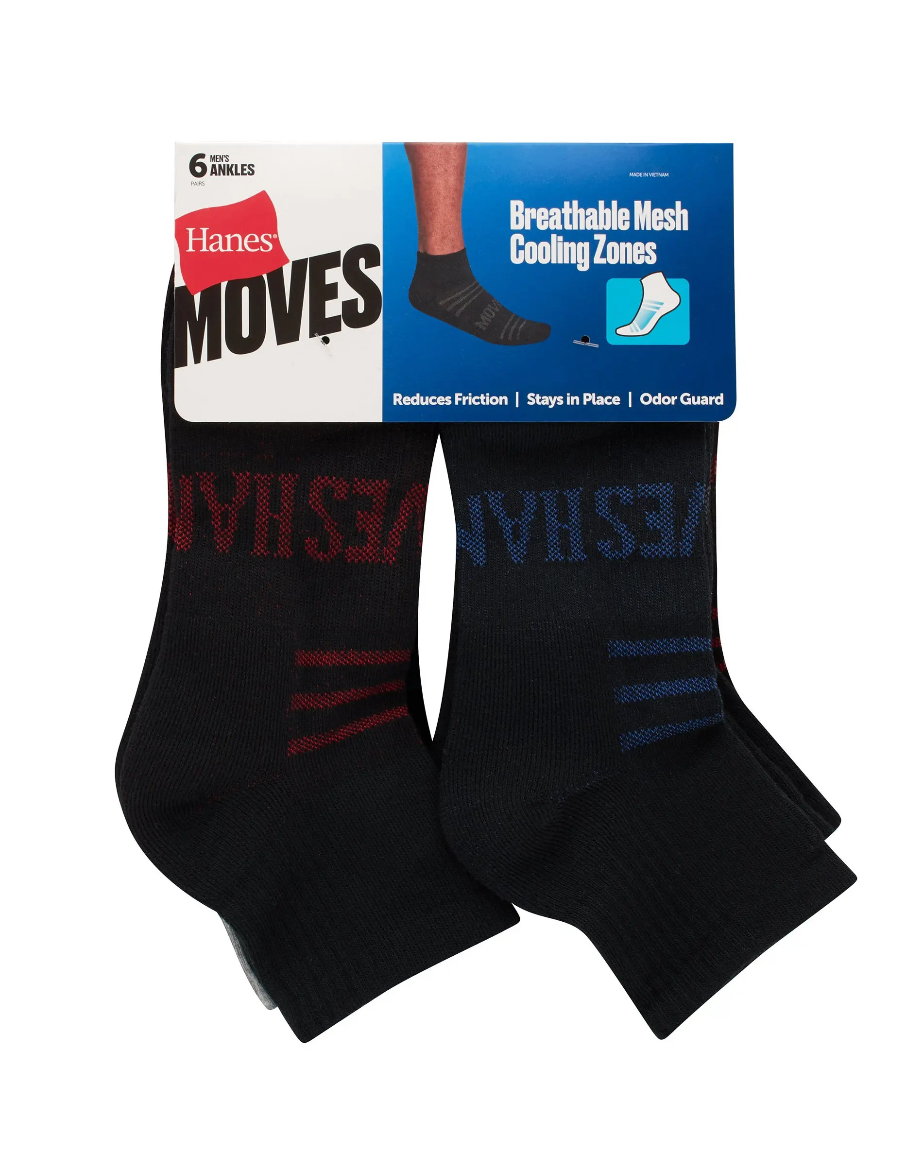 READY FOR ANYTHING Sweat-wicking and stretchy enough for the active days. Comfortable enough for the kick-back-and-rest days. Hanes Moves™ Men’s Ankle Socks are designed to feel good, look good, and move comfortably with you - no matter what your moves are. Constructed from a soft, stretchy blended fabric, these men’s performance quarter socks are engineered to stay put, thanks to the 4-way stretch, arch support, and Y-heel pocket that cups the heel to help reduce bunching and slippage. The interior of the sock is free from loops or strings and together with a smooth toe seam reduces friction so you can move without distraction. And should you work up a sweat - breathable mesh ventilation zones, moisture-wicking fabric, and anti-odor technology team up to keep you cool, dry, and feeling fresh. The best part? Extended heel and toe cushioning up the comfort quotient while improving the durability of the sock. Hanes Moves. Ready for Anything.