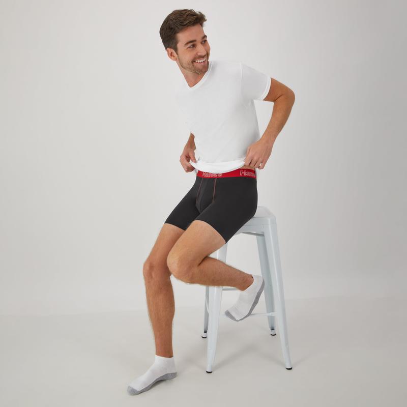 STAY COOL, STAY COMFORTABLE Made to move when you do, this Hanes men's boxer brief underwear is crafted from lightweight stretch cotton and features a soft and stretchable Comfort Flex Fit® waistband. Each pair has a no-ride-up design, so they'll stay put no matter how long your day. Plus, you can throw boxer briefs for men right in the washer when they need a quick refresh. And our favorite feature part of all? These men's black boxer brief underwear sets have different waistband colors and come in multiple size options. From small to extended sizes like 3XL, you can choose the one that works best for you.