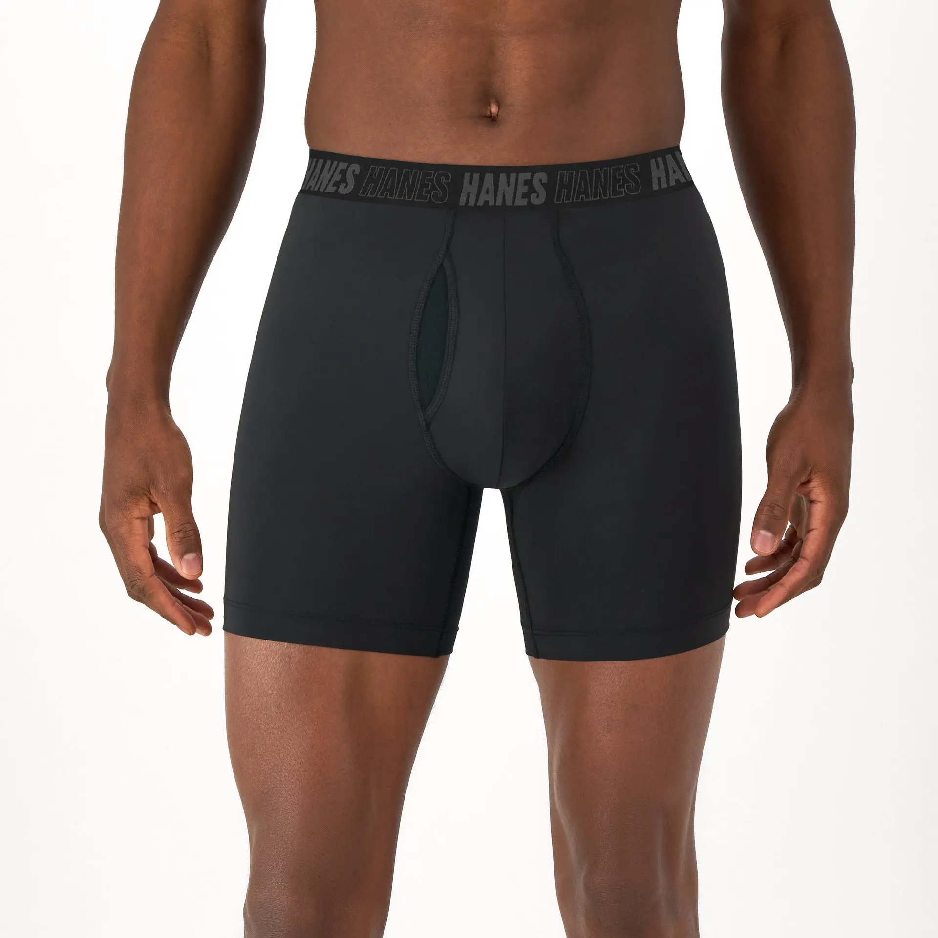 A real game-changer, this boxer brief underwear for men is available in a convenient 3-pack featuring logo waistbands. Hanes Moves. Ready for anything.