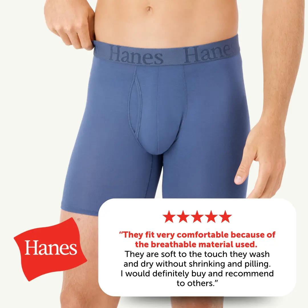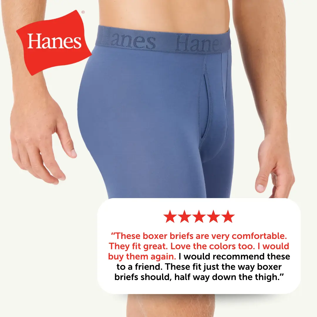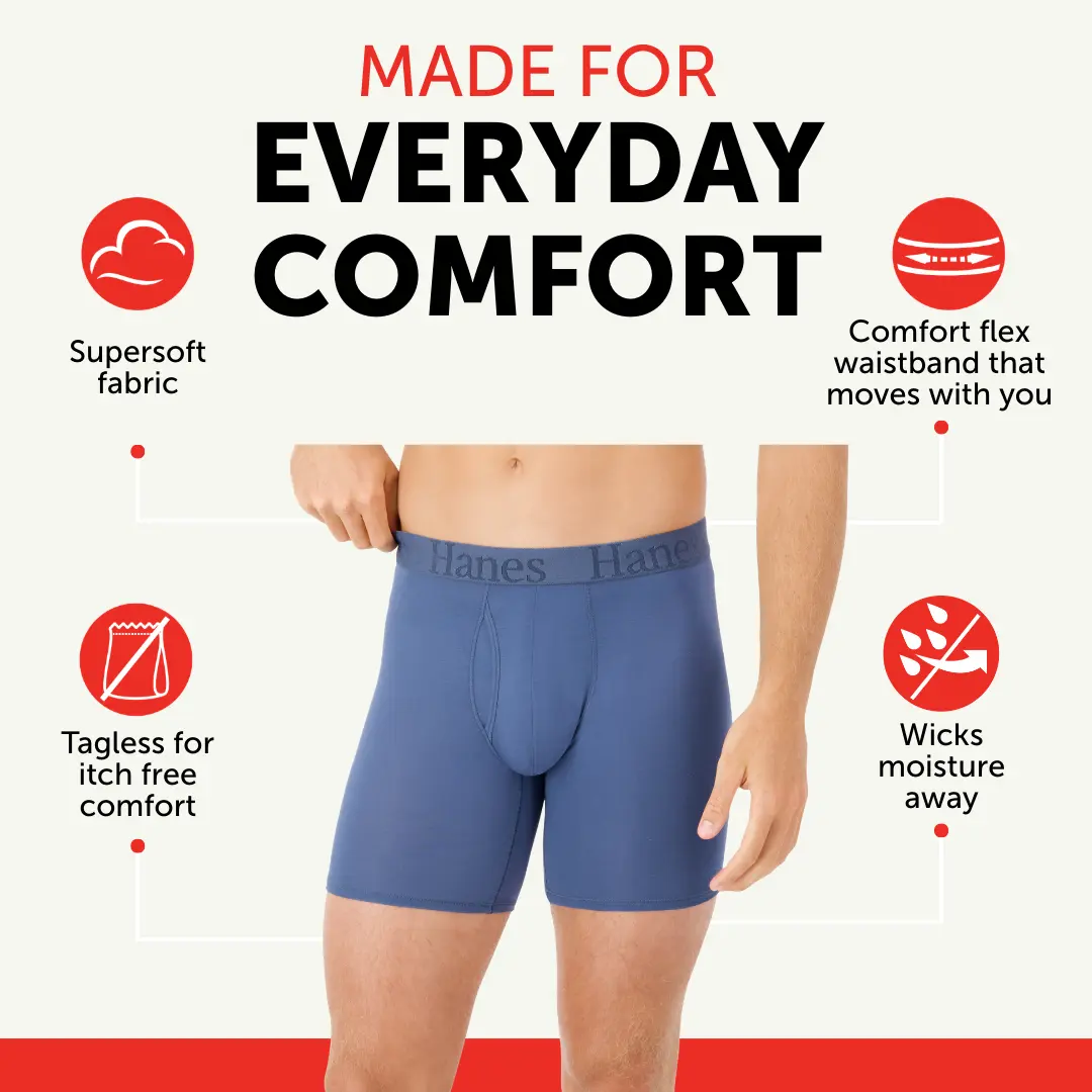 IT'S SOFT, IT'S COOLING, IT'S EVERYTHING Indescribably soft. Cool and breathable. These Hanes Originals men’s boxer briefs are made from our softest fabric EVER - luxurious viscose from bamboo fabric that is both super lightweight and engineered to beat the heat. Comfort is built into an elevated, modern design that features a lower rise, a plush and stretchable waistband, and sophisticated colors that keep it classic. Soft seams help reduce chafing, and you’ll love the no-ride-up fit in moisture-wicking underwear that feels as cool as it looks. Hanes Originals. Who says you can’t have style and comfort? (Not us).