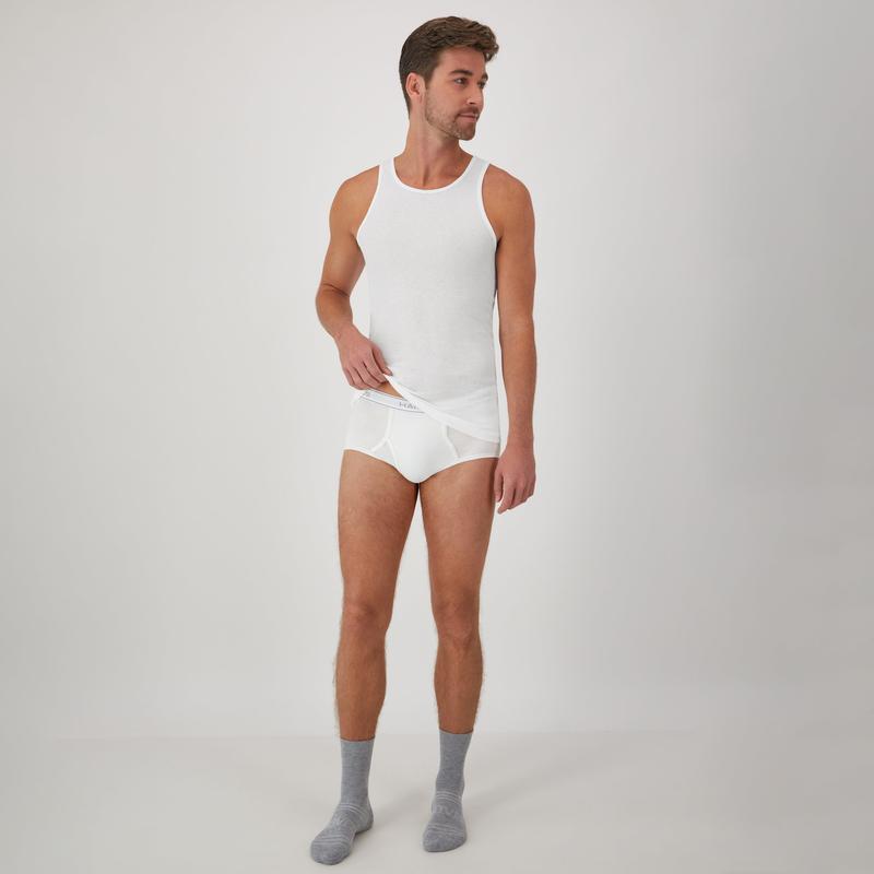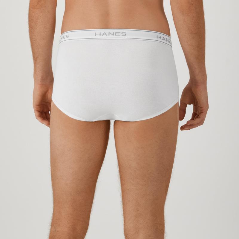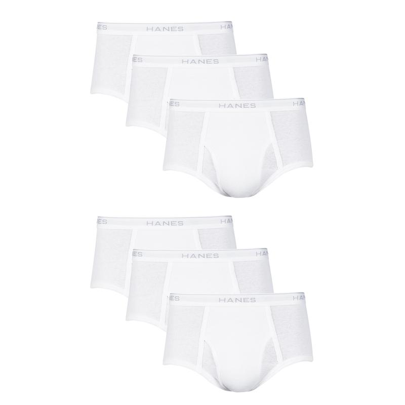 KEEP YOUR COOL When it's time to stock up on basic white briefs, Hanes has the ones you want. These soft and breathable men's white briefs are knit from Cool Comfort® fabric that wicks away moisture from your skin to keep you cool and comfortable all day. You'll really appreciate the improved Comfort Flex® waistband that now adjusts to fit you, and these full-cut cotton briefs are also tag free, so there's no annoying tag to bunch up or itch. With a traditional open fly, this cool, lightweight underwear comes in a convenient 6-pack, so stocking up is a no-brainer.