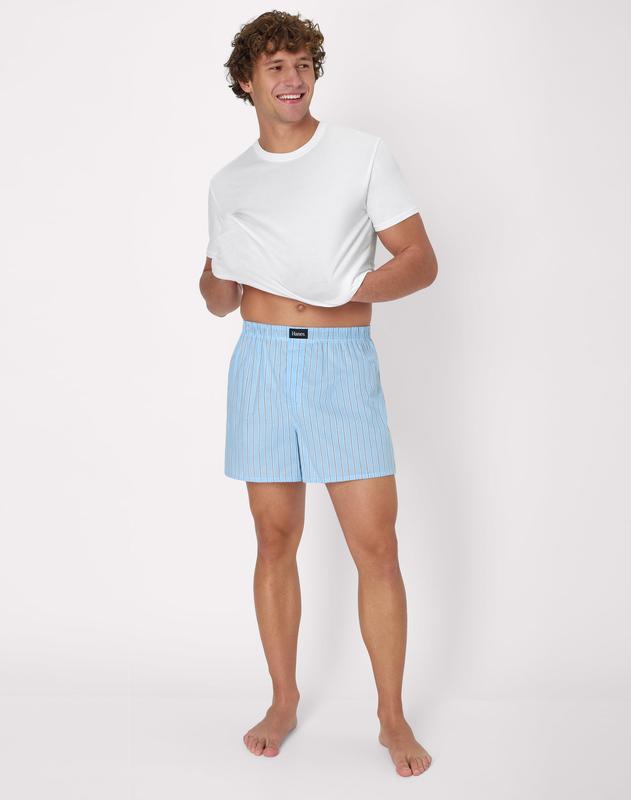 OUR BEST BASICS ARE FAR FROM BASIC Classic boxer comfort. Made-to-move updated fit. Hanes Originals Ultimate men’s cotton stretch woven boxers strike the perfect balance for a fit that’s both modern and easygoing. Crafted from a lightweight cotton-blended fabric featuring just the right amount of stretch, this flexible design is made to move when you do. An ultra-soft, fabric-covered waistband feels great against the skin, and you’ll like the no-gap fly and smooth Tagless® interior. Worried about the sweat? These cool and breathable men’s boxers are bolstered by moisture-wicking technology for a fresh feel all day. And with a convenient 3-pack of plaids or prints, you’re set for multiple days of carefree wear.