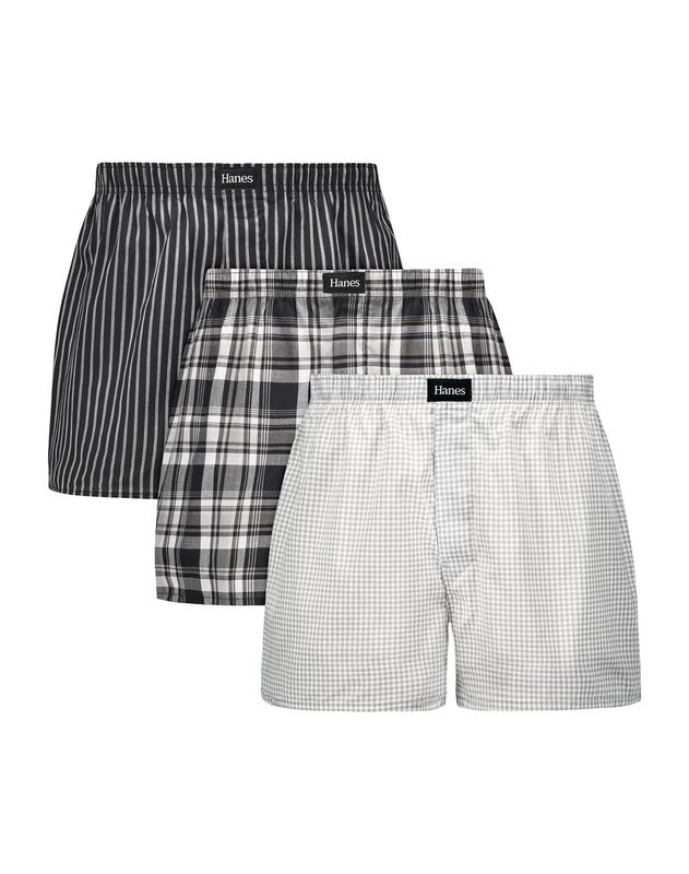 OUR BEST BASICS ARE FAR FROM BASIC Classic boxer comfort. Made-to-move updated fit. Hanes Originals Ultimate men’s cotton stretch woven boxers strike the perfect balance for a fit that’s both modern and easygoing. Crafted from a lightweight cotton-blended fabric featuring just the right amount of stretch, this flexible design is made to move when you do. An ultra-soft, fabric-covered waistband feels great against the skin, and you’ll like the no-gap fly and smooth Tagless® interior. Worried about the sweat? These cool and breathable men’s boxers are bolstered by moisture-wicking technology for a fresh feel all day. And, with a convenient 3-pack in plaids or prints, you’re set for multiple days of carefree wear.