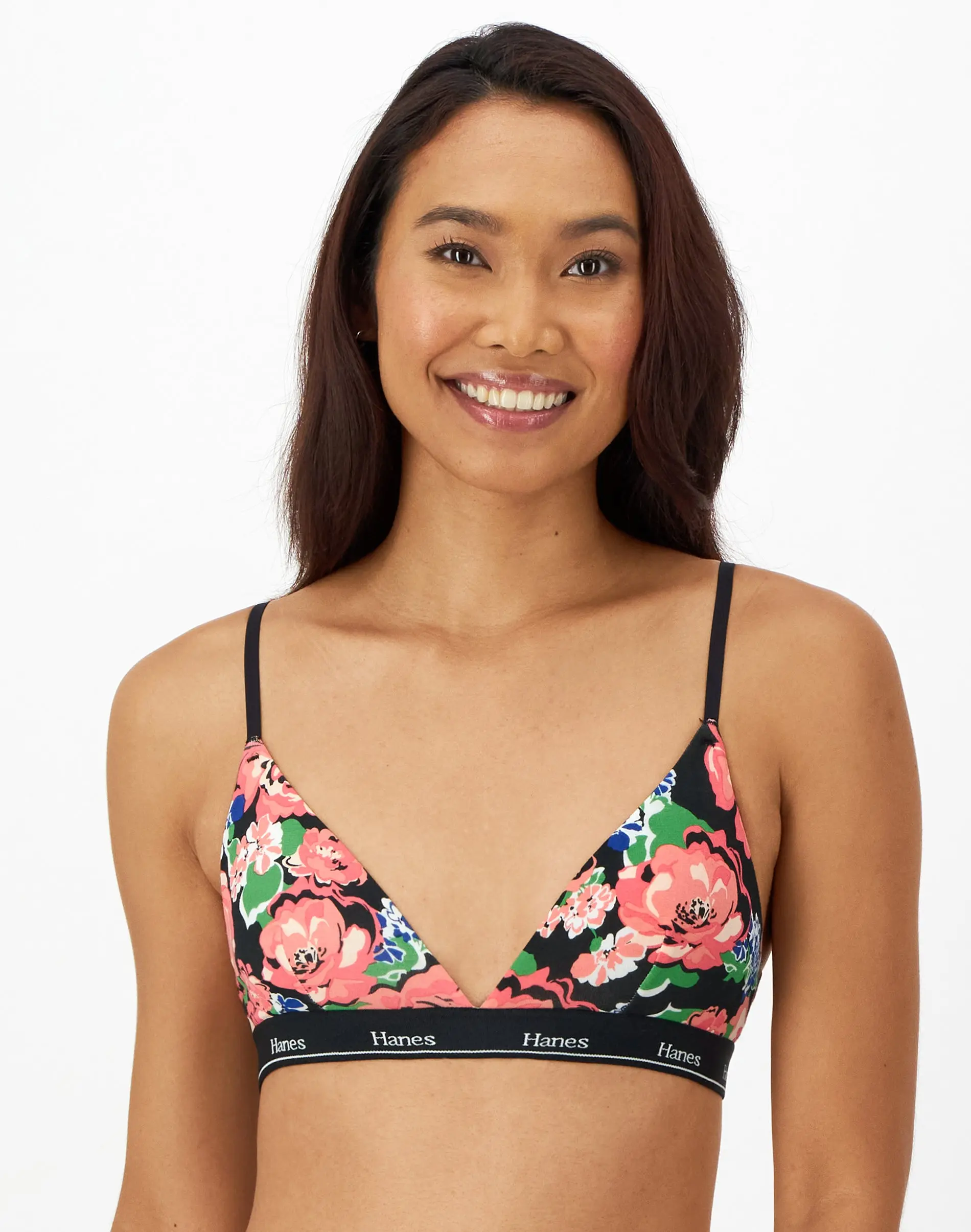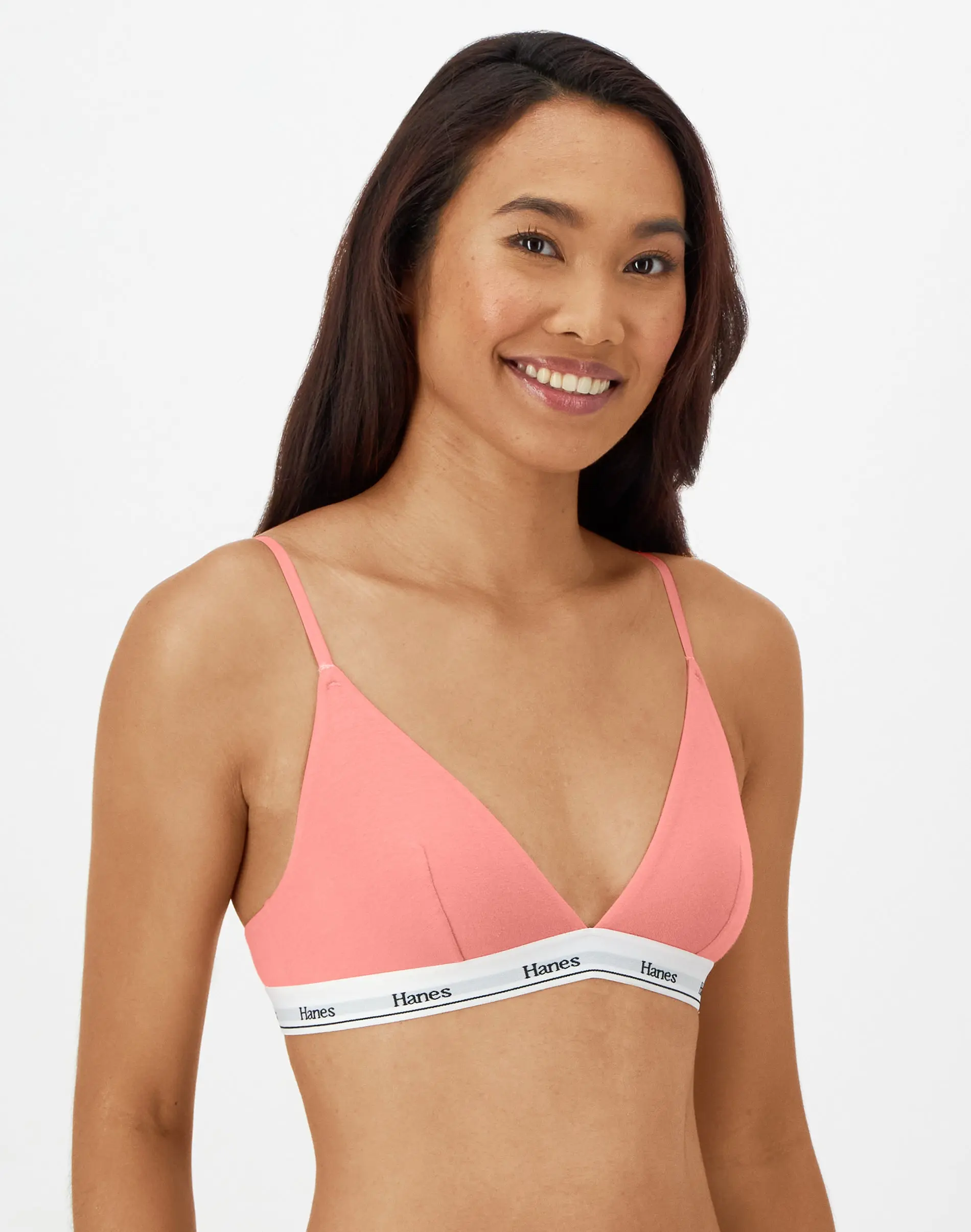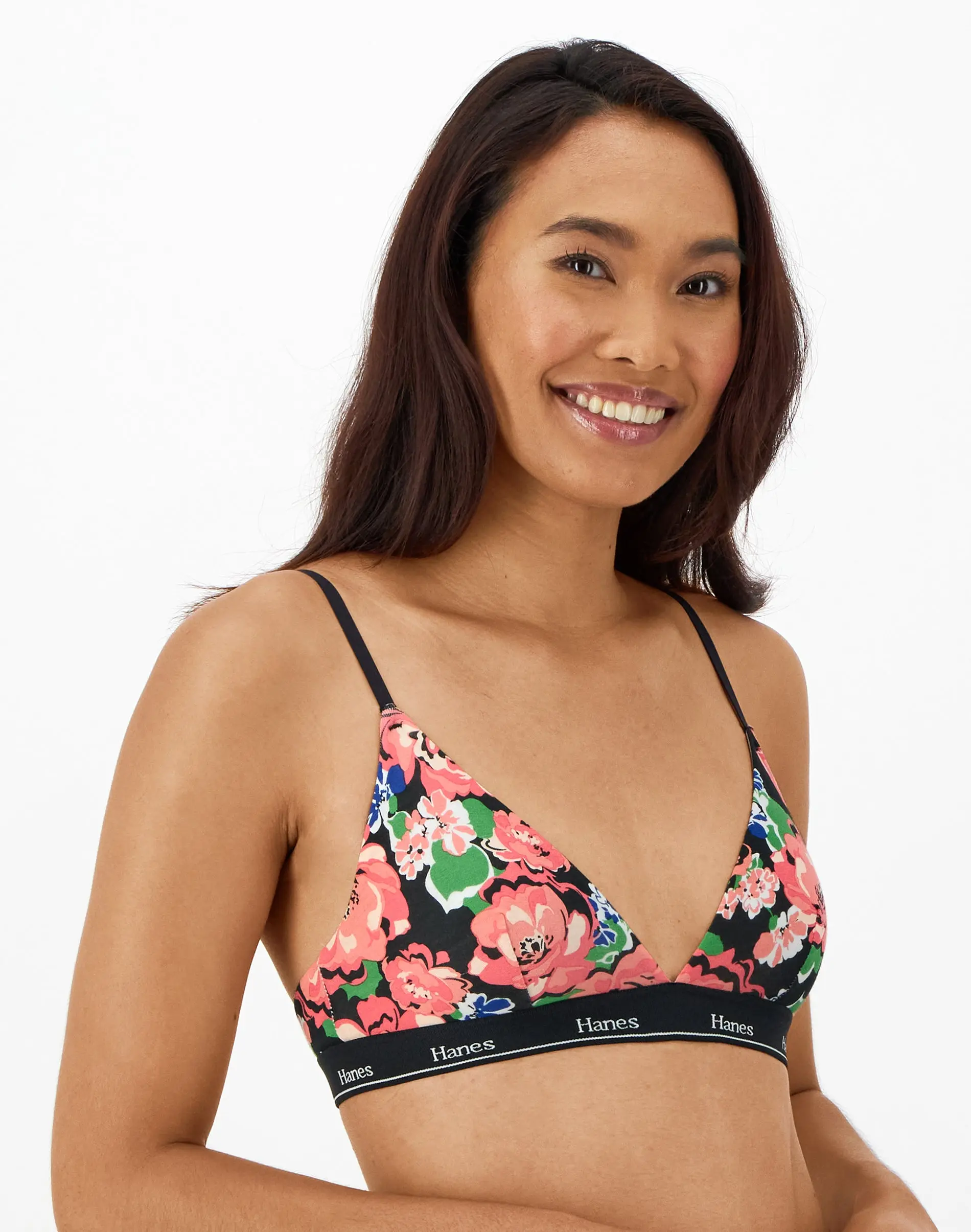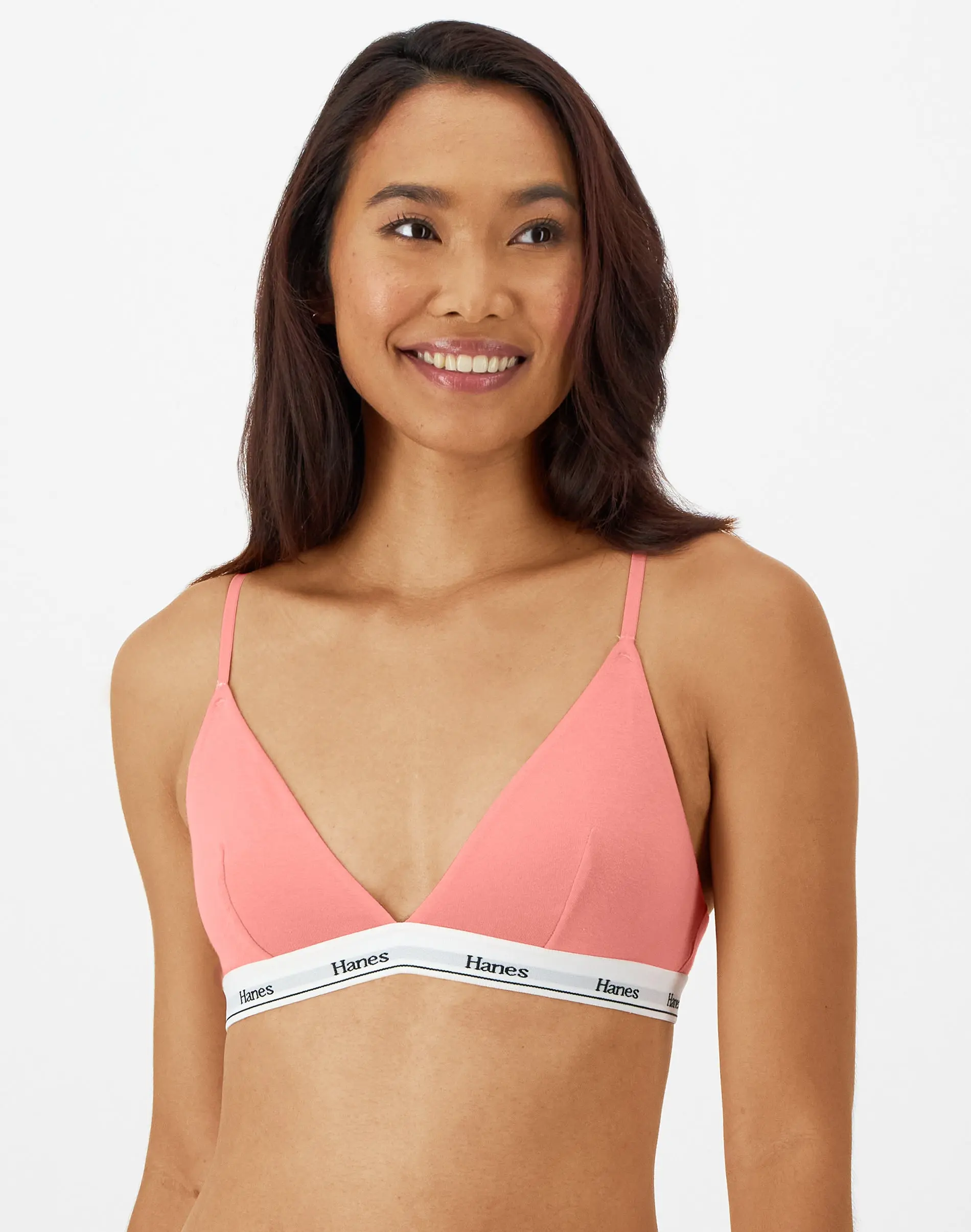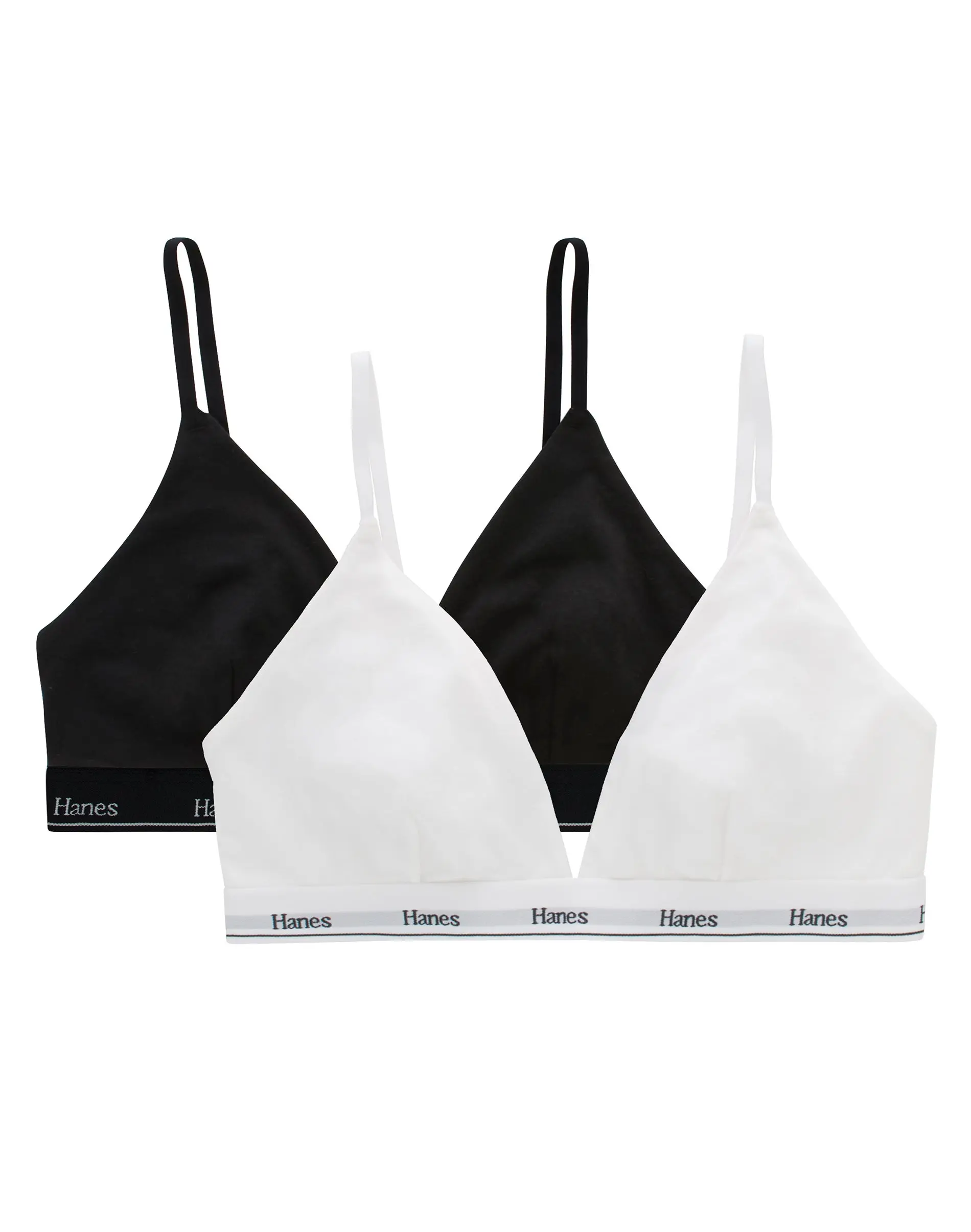 BASICS THAT ARE FAR FROM BASIC This Hanes Originals women's triangle bralette is made with signature cotton-rich blended fabric designed to leave your skin feeling happy and free. ComfortFlex Fit® bras are designed to fit you, while Cool Comfort™ technology keeps you feeling comfortable all day long. Designed with classic hook-and-eye closure, this comfortable style offers adjustable straps for the perfect, custom fit. Finished with a plunging V-neckline for added style, this must-have bralette is available in a convenient pack of two.