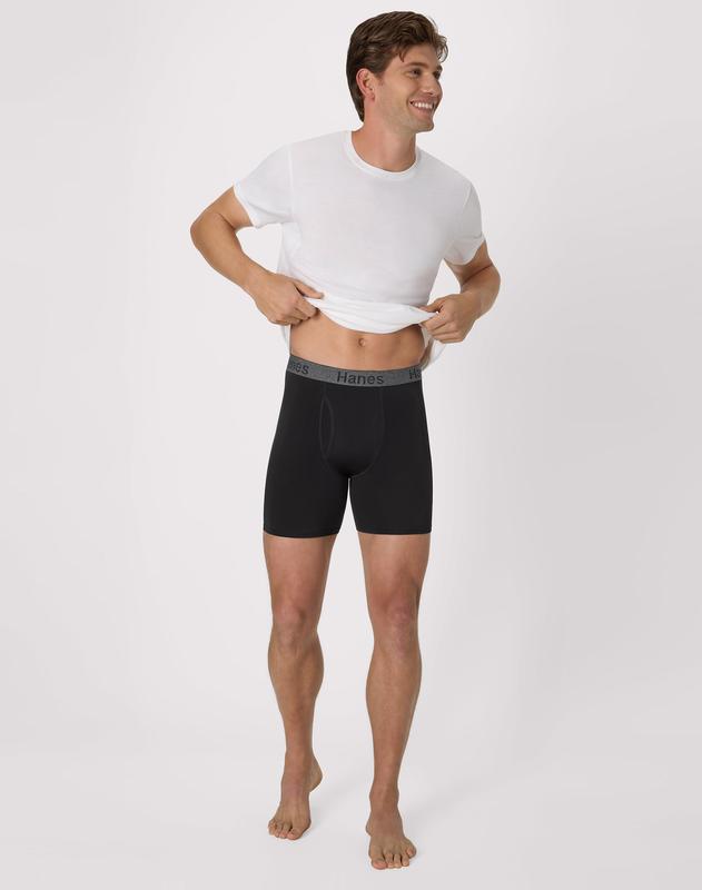 VALUE PACK - Stock up with three pairs of black boxer briefs with Hanes branded waistbands.