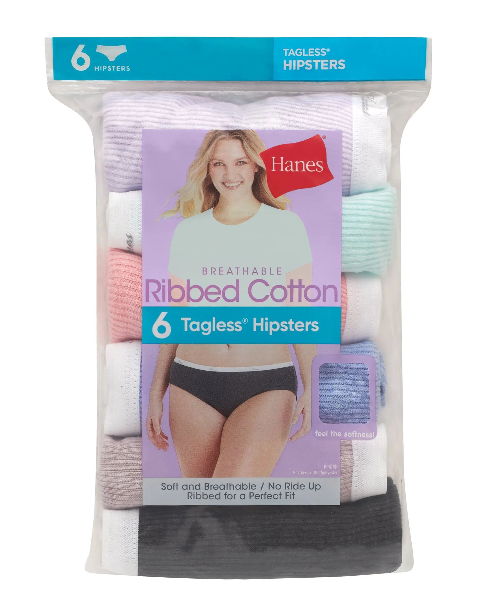 UPGRADE TO SOFT RIBBED COMFORT Walking the line between a brief and a bikini, this Hanes women's hipster underwear is all about comfort and fit. The ribbed cotton-rich fabric gives it a fabulous fit that moves with you yet holds its shape. These soft and lightweight hip-hugger panties have a low-rise silhouette with moderate back coverage and wider sides, sitting at the hips to accommodate lower waist fashions. Cool Comfort® fabric wicks away moisture to keep you cool and comfortable all day. You'll also appreciate the ultra-soft signature waistband and comfort leg bands that stay in place without riding up. Stock up and start experiencing the true comfort of Hanes, all day, every day.