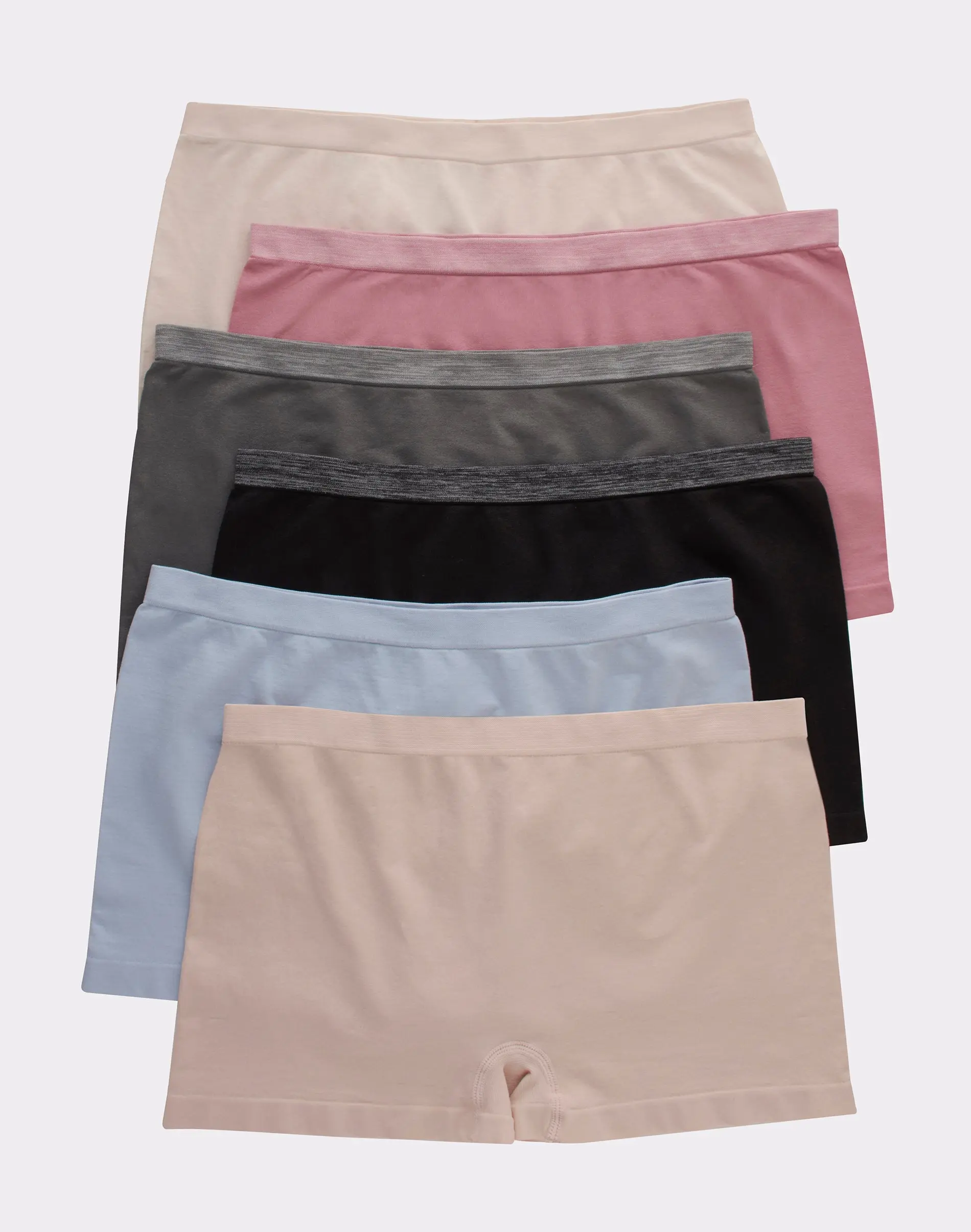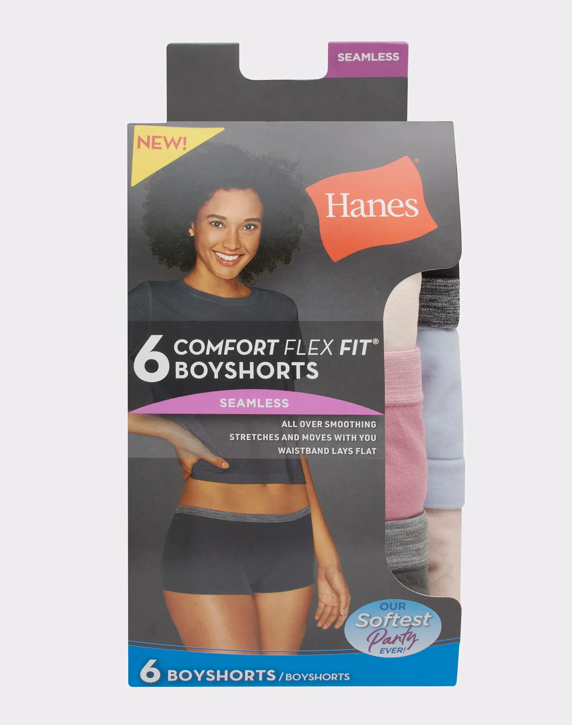 LIGHTWEIGHT ALL - DAY COMFORT Built for movement, Hanes women’s boyshort underwear is crafted from Comfort Flex Fit® 4-way stretch fabric for a comfortable fit. Moisture-wicking technology works to keep you feeling your best, even during your most active days. The seamless design of these women's boxers features no-ride-up leg bands, so you can move with ease. Accented with a smooth Tagless® interior, this assorted boyshort underwear is available in a convenient 6-pack for stock-up ease.