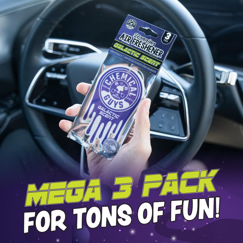 Blast off to new heights of scent satisfaction with Chemical Guys Galactic Scent Hanging Air Freshener. This exhilaratingly crisp, woodsy scent is specially formulated to transport you to an exotic-smelling intergalactic oasis, far away from any bad smells you may encounter in your ride's interior.