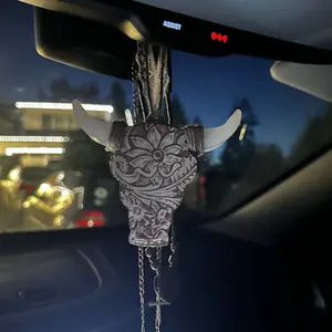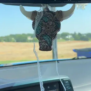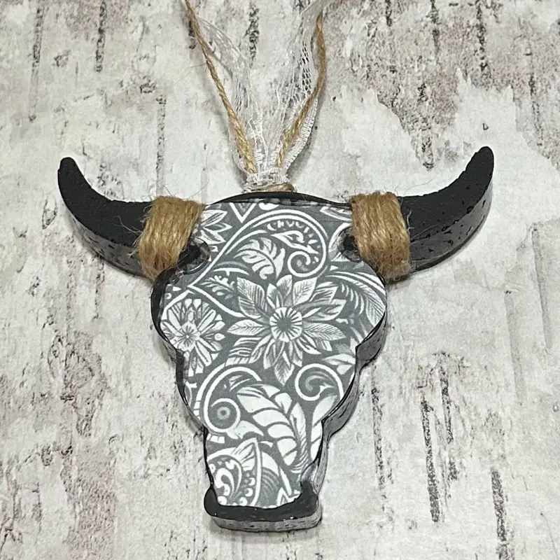Hanging Car Freshie, Faux Leather Cardstock Skull