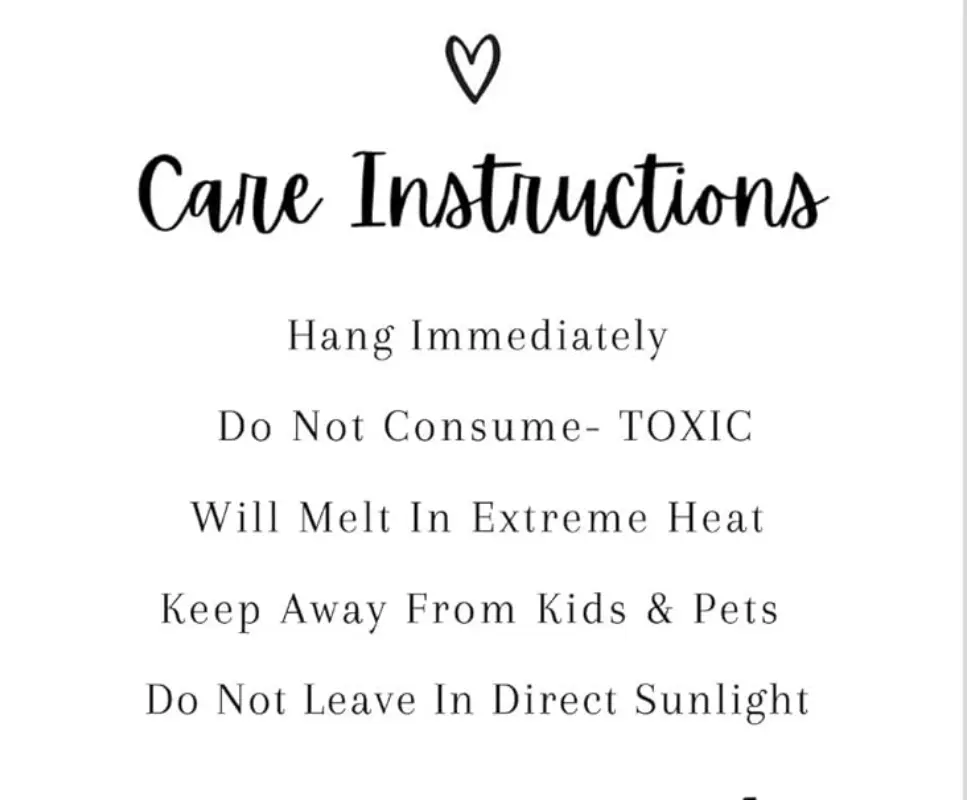 Β·Usage Instructions: Hang immediately; do not place on the dash or any surface to avoid staining or damage.
