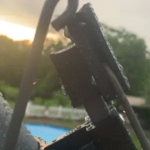 QUALITY MATERIALS: A powder-coated steel frame pairs with water-resistant cushions and weather-resistant polyester to create a unique shade and seating solution