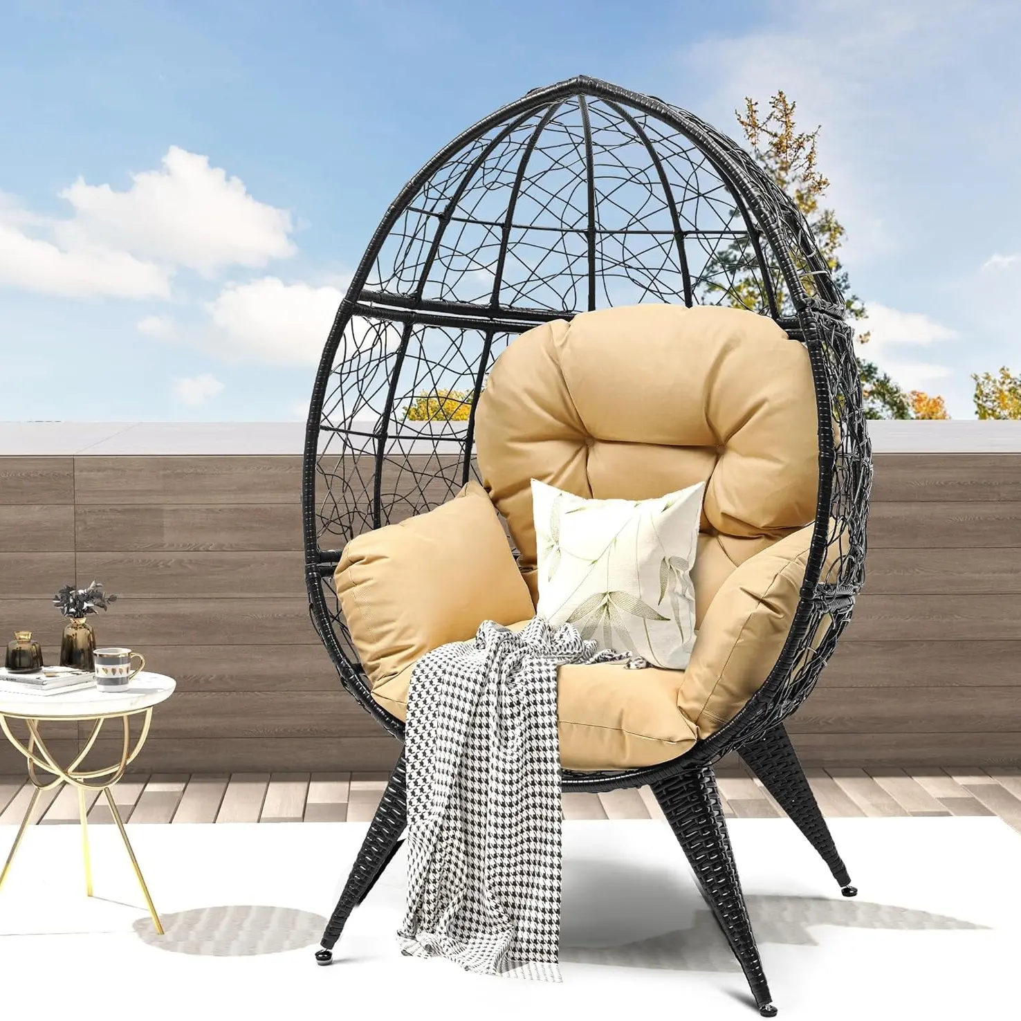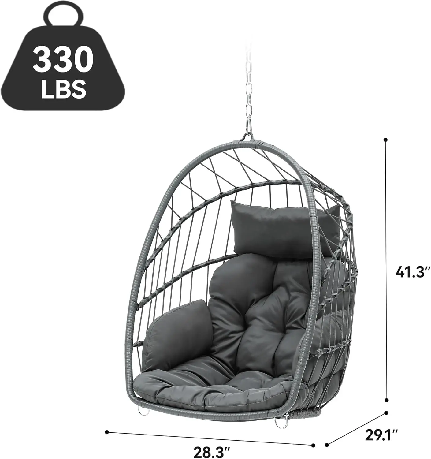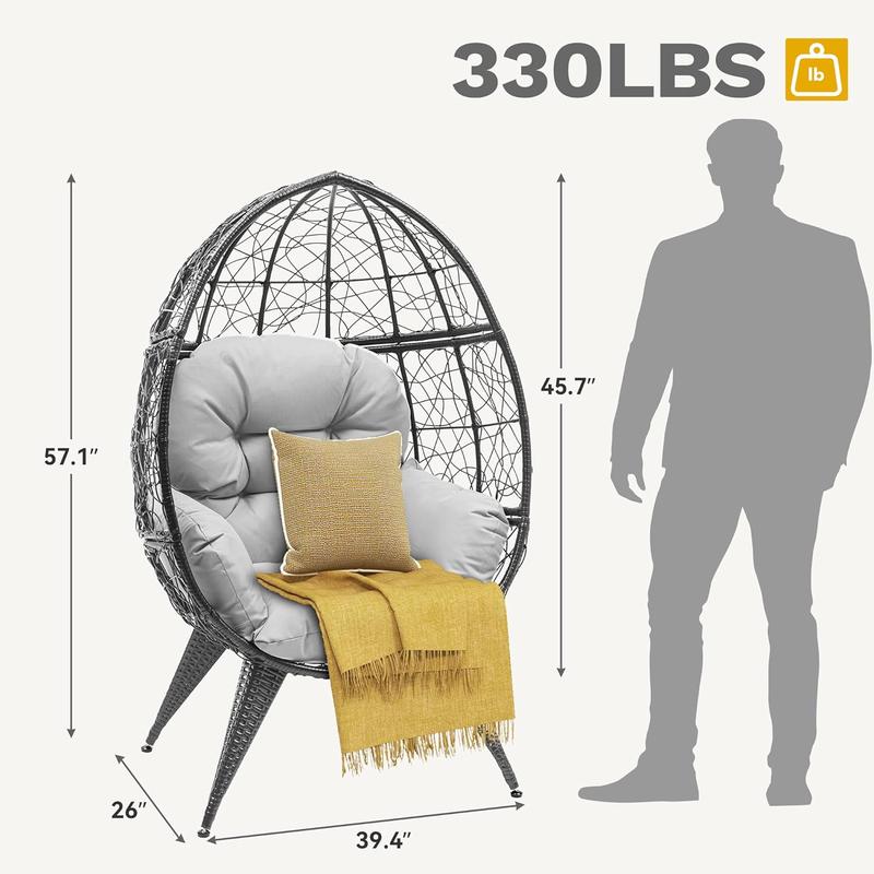 Plush Upholstered Seat: The egg chair basket measures 46x40x26in and comes with one-piece PP cotton padded upholstery; with a thickness of up to 6in, the waterproof and fade-resistant polyester fabric offers a soft and comfortable relaxation spot.