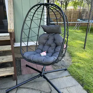 LEISURE TIME: The patio egg chair uses an upgraded version of soft cushion and a headrest with a stable tripod. You just need to install the tripod according to the instructions and hang the egg chair. It only takes you ten minutes to open it to enjoy the afternoon time easily. The spacious and comfortable patio lounge chair is your good partner for leisure time.