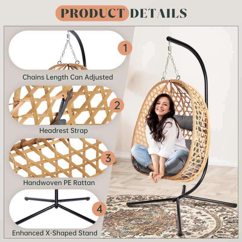 Premium Quality: Made with durable handwoven PE rattan in a stylish beige double-fold flat and twisted design, complemented by a galvanized steel frame with an X-shaped structure for enhanced stability. The rust-resistant coating ensures long-lasting durability.