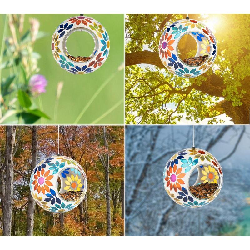 when the afternoon sun hits, the reflections bounce all over the  room and the cats go crazy watching them, you could even hang a plant in it instead 🌞 #birdfeeder #mosaictile #birdfeeding