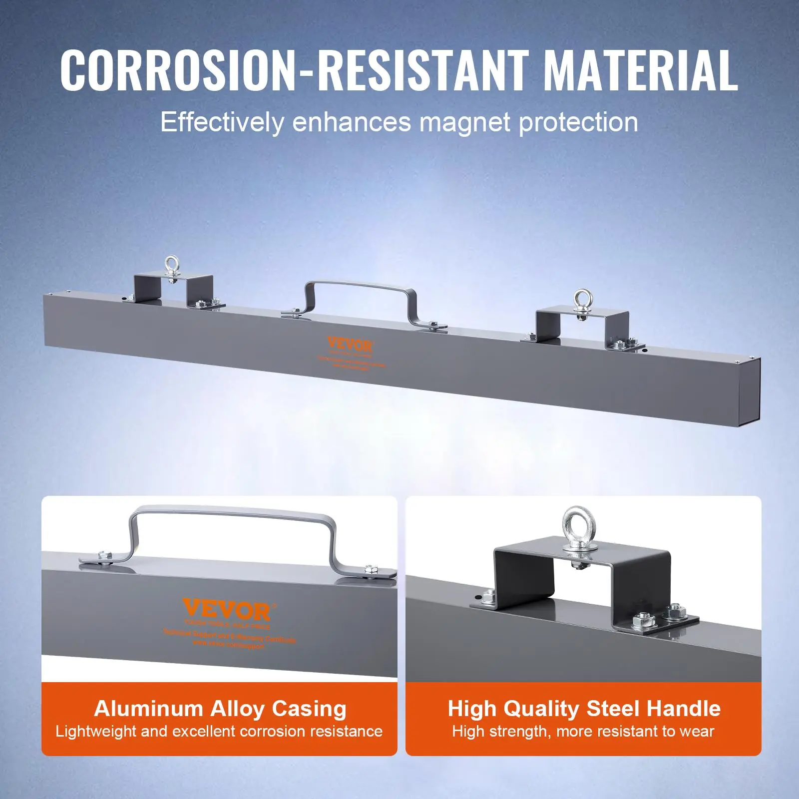 • Enhanced Efficiency: The hanging magnetic sweeper boasts an improved design that ensures exceptional efficiency in its performance. Its sturdy and durable construction, featuring a heavy-duty aluminum casing and premium steel lifting handles, guarantees long-lasting use even in demanding environments.