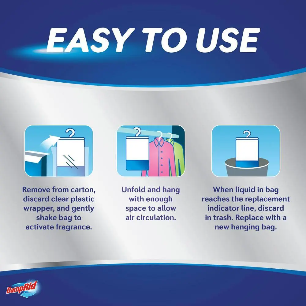 DampRid 15.4 oz Hanging Moisture Absorber, Pack of 3, Fragrance Free, Hanging Bag Moisture Absorber, Electricity Free Dehumidifier for Closets Dorms Storage, Inhibits Mold Mildew Odors, 10% More Power Lasts Up to 60 Days, Fragrance Free Option Available.