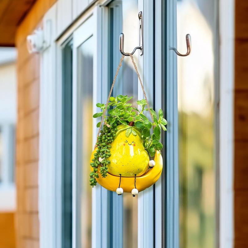 ăIndoor and Outdoor DecorationăUnique swing plant pots with confidence with drainage holes and soft plugs keep leaks at bay, even decor ceilings, in indoor windows, bathrooms, kitchens, and offices. It can also be used to decorate courtyards, fences, and gardens.