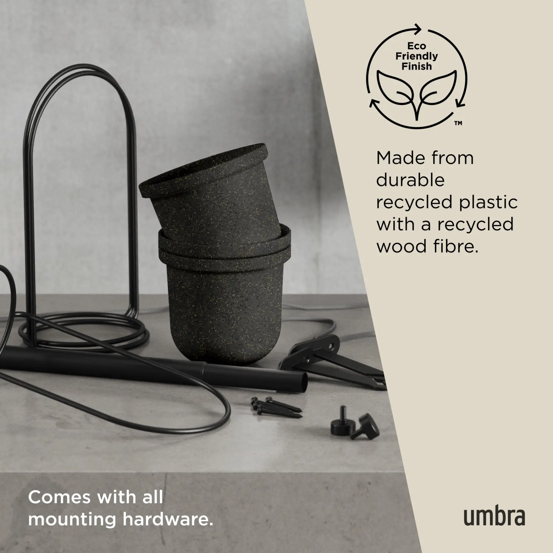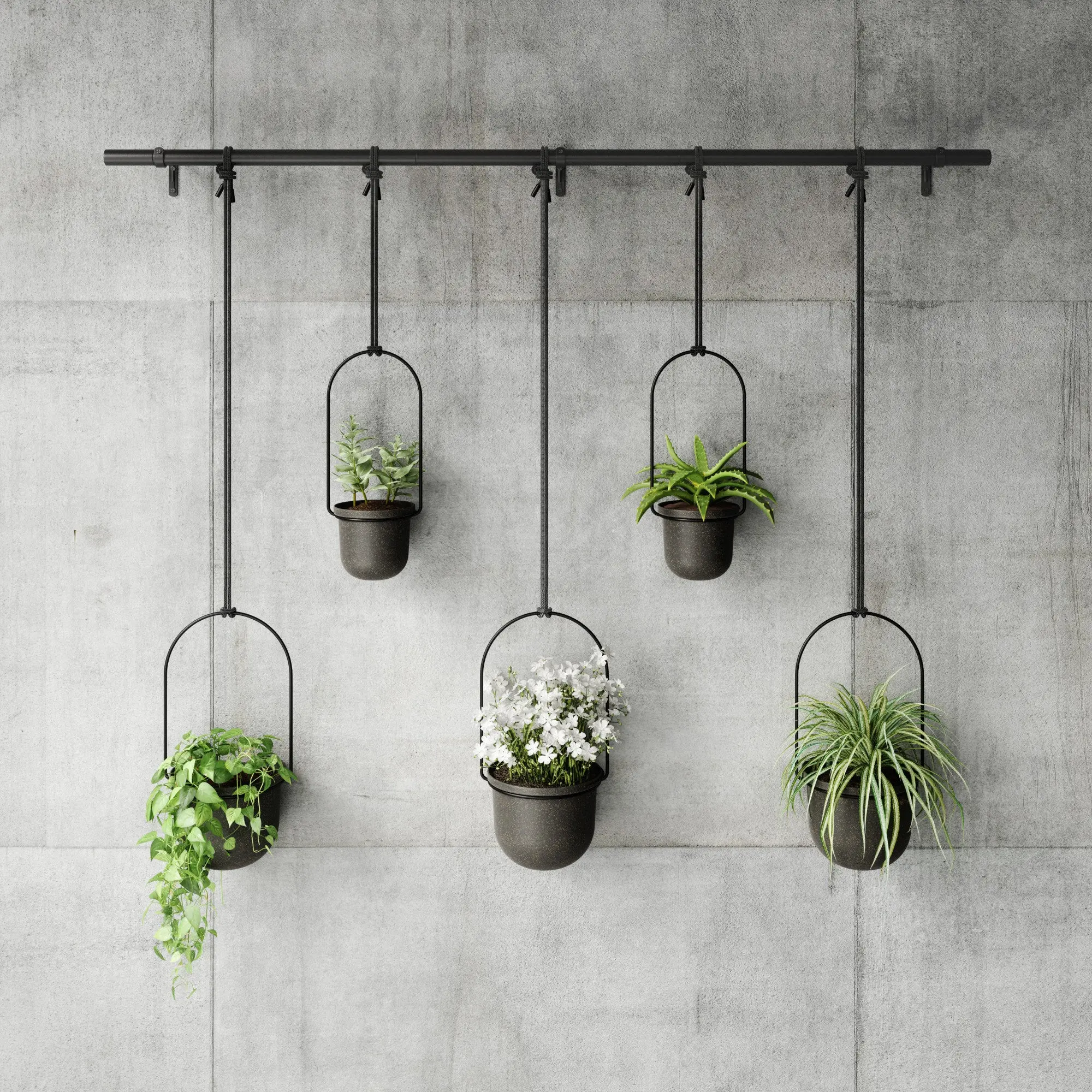 Triflora is designed for maximum versatility and convenience. Its metal rod supports five hanging planters that can hold up to two standard 3-inch pots and three 6-inch pots, making it perfect for a variety of plants. The recycled polypropylene pots are lightweight yet durable, and the included drainage options ensure that your plants stay healthy.